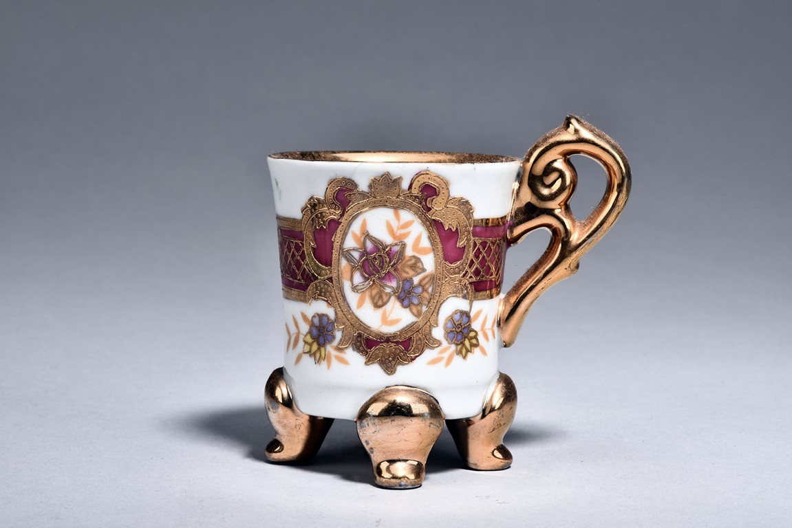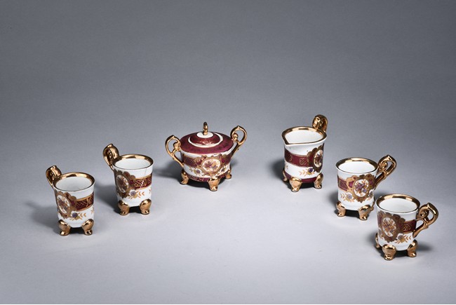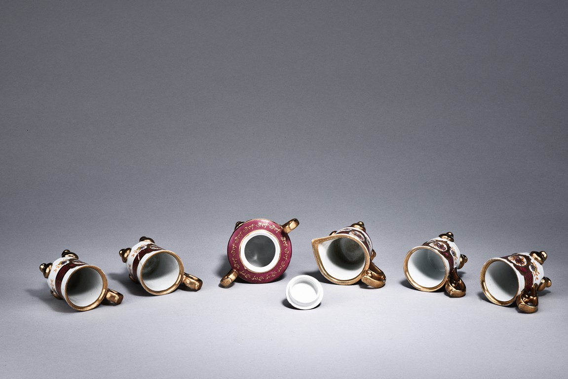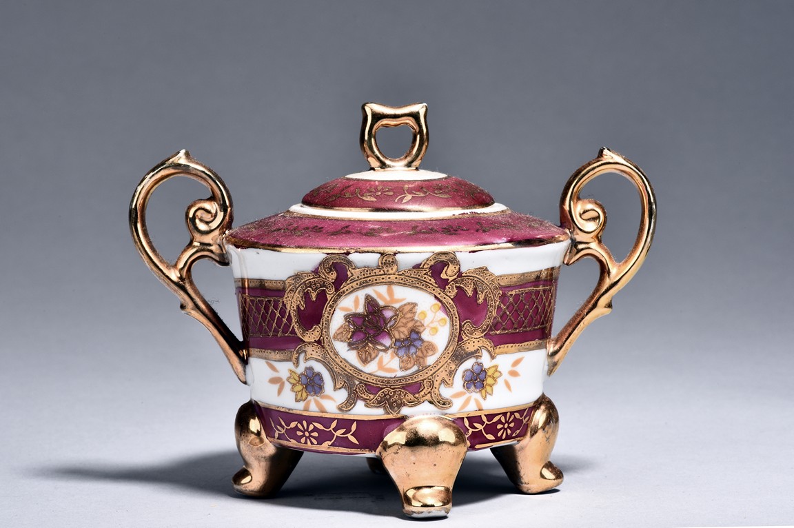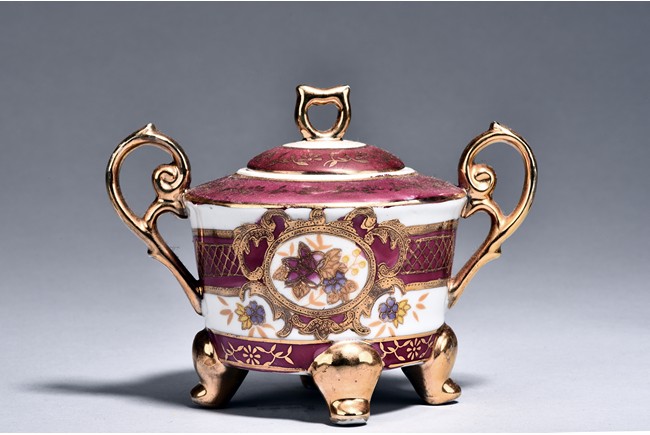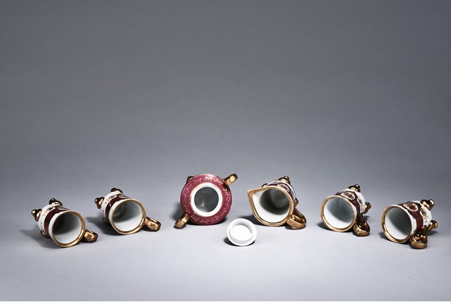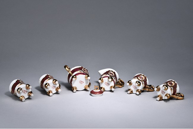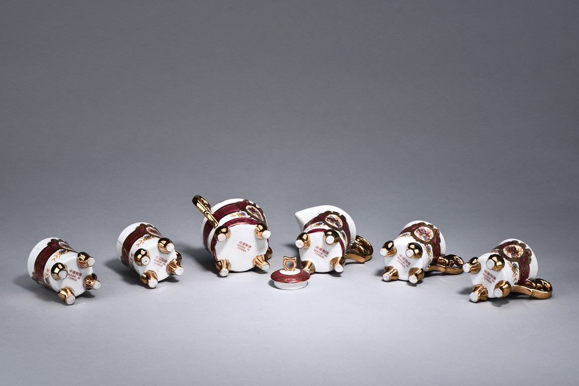 Of ear shaped handle, the teapot is of compressed globular shape, the spout slightly curved, with round dome cover, surmounted with bead finial. The bottom incised with four character 'Bo Ya Ju Zhi'.