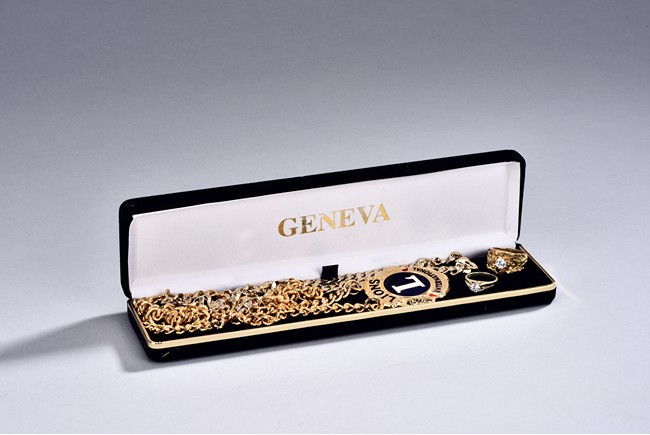Dimension: Necklace length: 16 1/8 in (41 cm); Ring diameter: 1 in (2.5 cm)