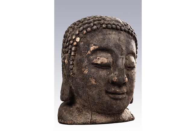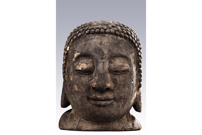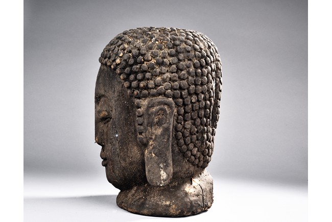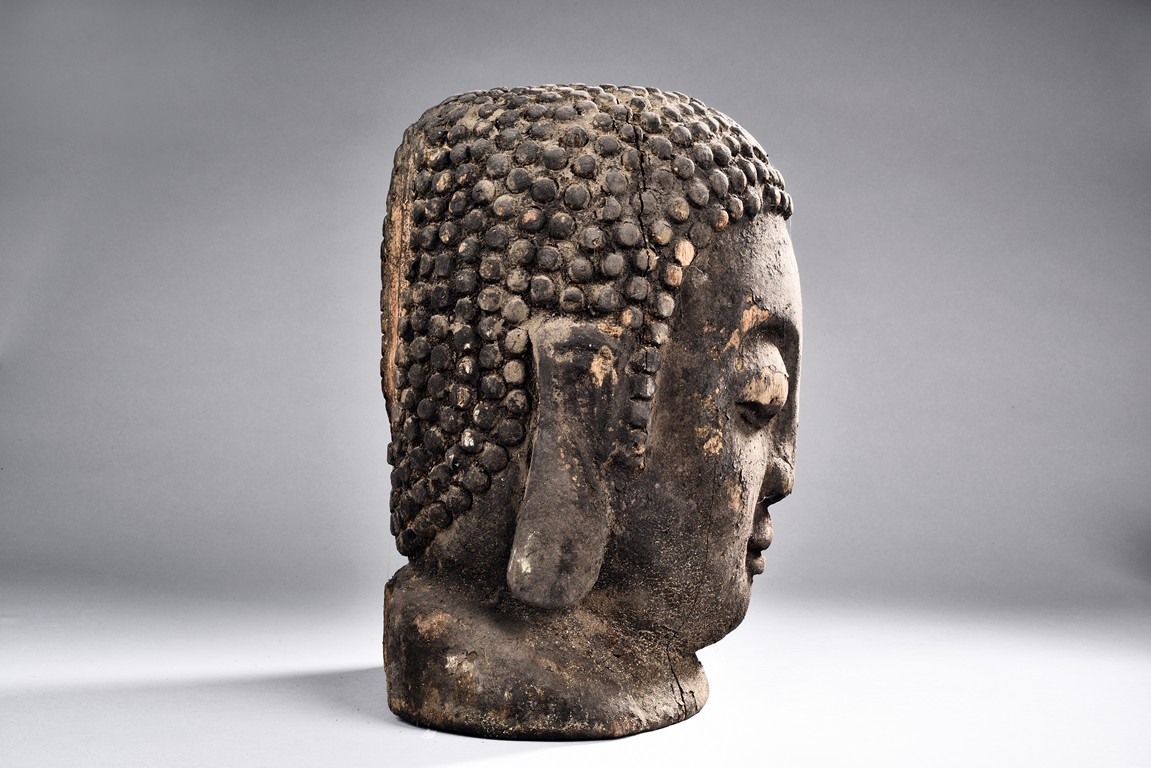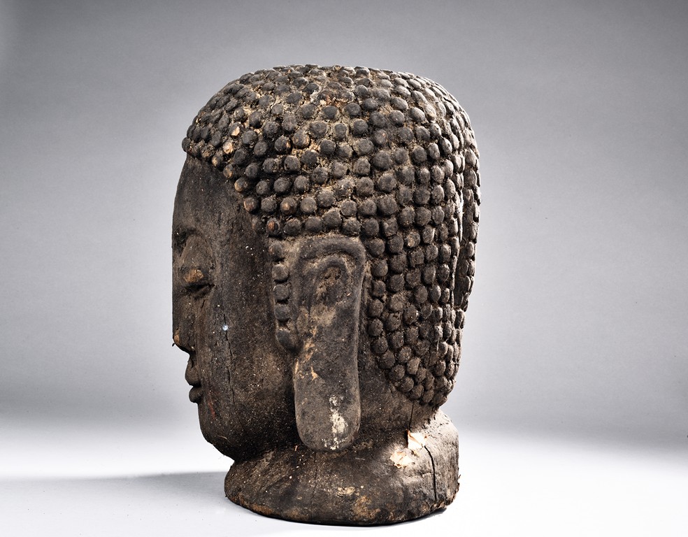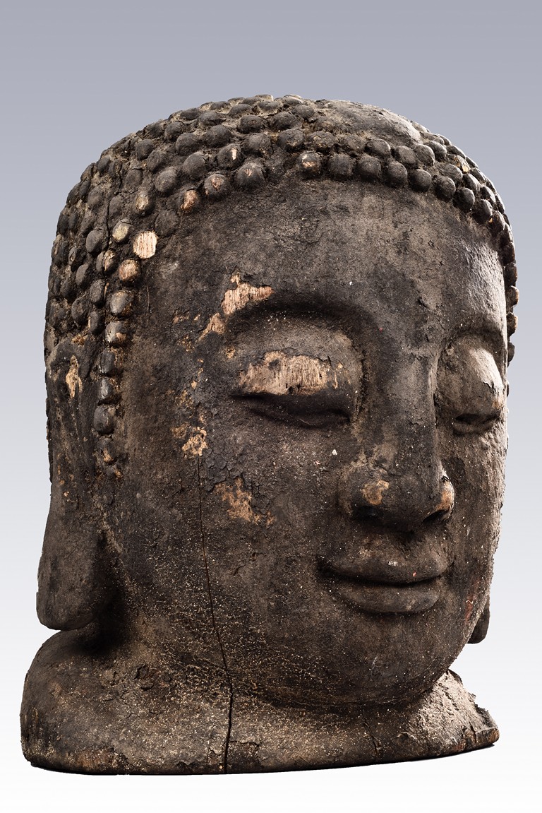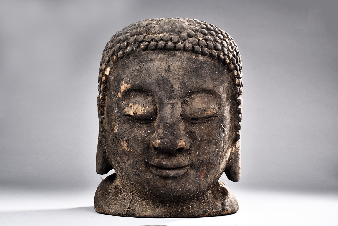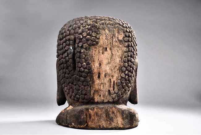 A LARGE WOOD BUDDHA HEAD CARVING 木雕大佛頭