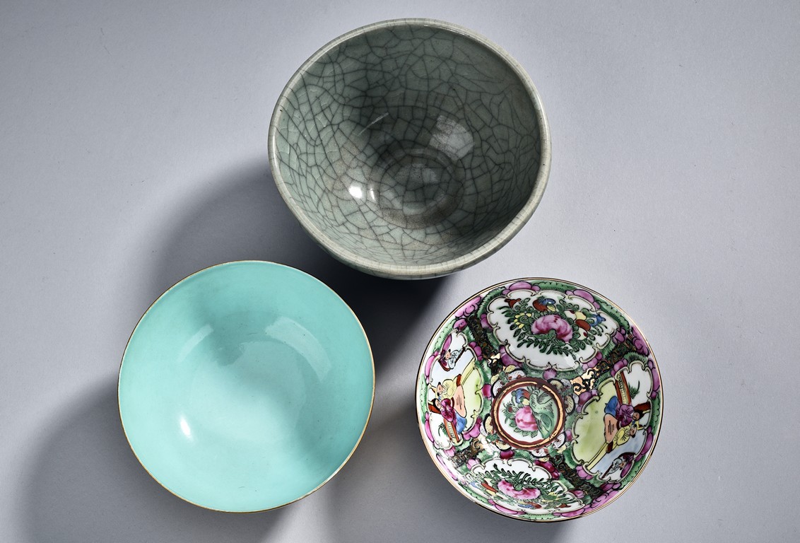 A GROUP OF THREE GLAZED BOWLS 瓷碗三個