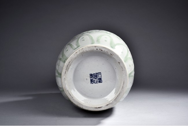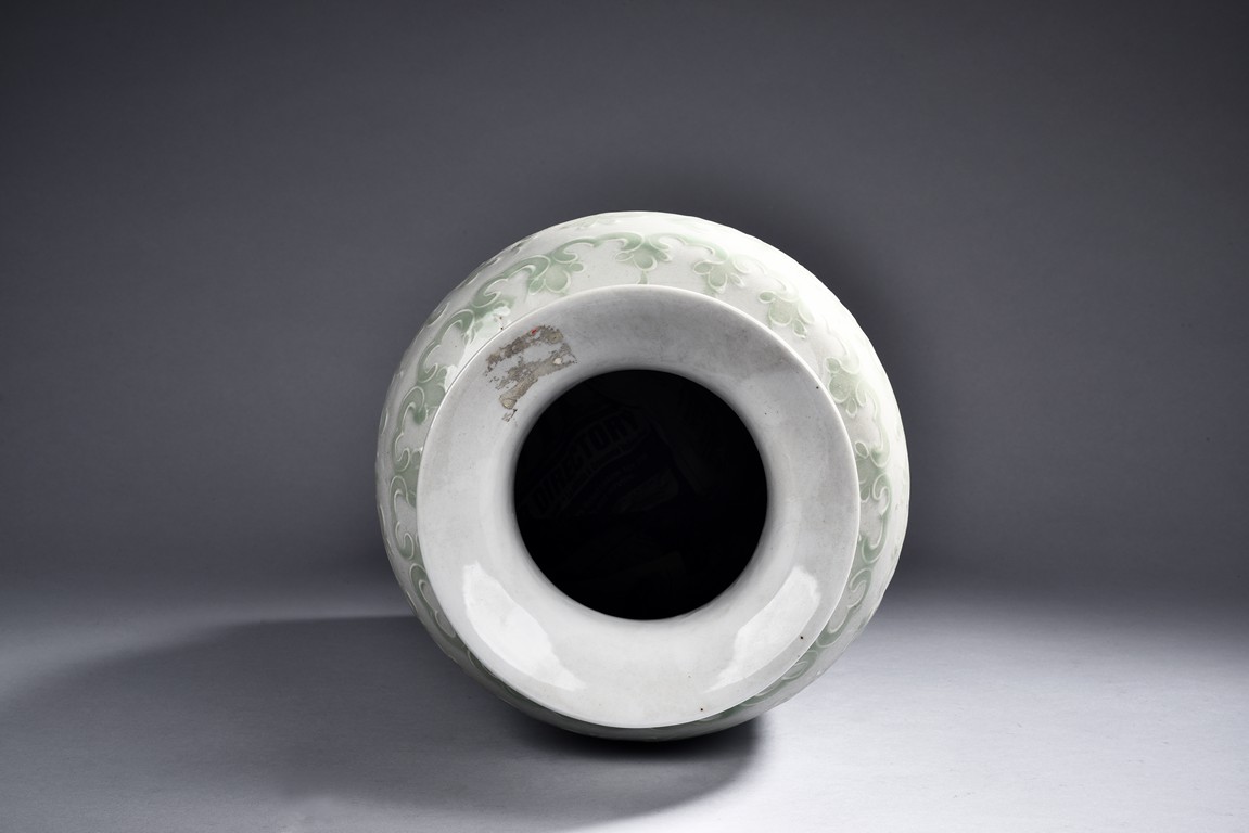 A GREEN GLAZED WHITE GROUND VASE 白底綠釉花瓶