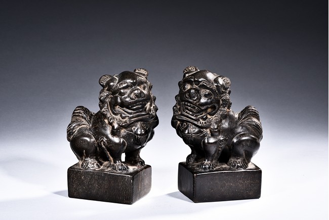A PAIR OF STONE CARVED LION PAPER WEIGHTS 石雕小獅子一對