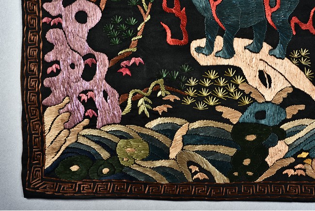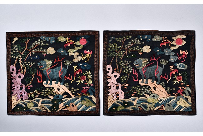 A PAIR OF EMBROIDERED SILK MILITARY OFFICIAL'S RANK BADGES 清 刺繡武官補子兩張