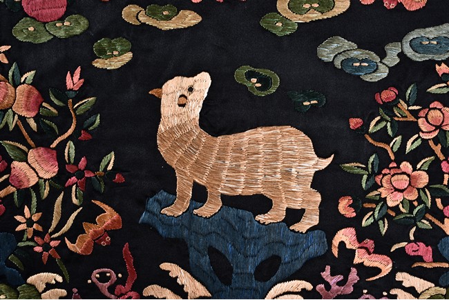A PAIR OF EMBROIDERED SILK MILITARY OFFICIAL'S RANK BADGES 清 刺繡武官補子