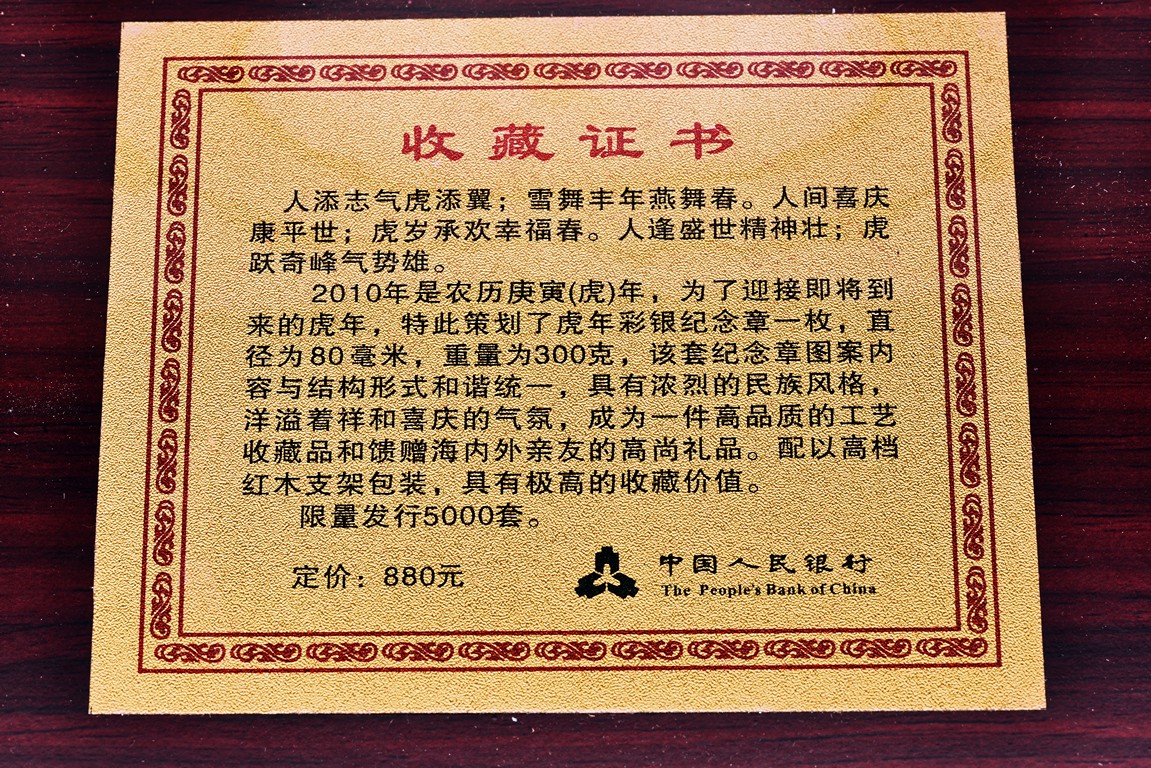 A VINTAGE 2010 YEAR OF TIGER COIN 中國人民銀行發行2010 虎年紀念銀幣