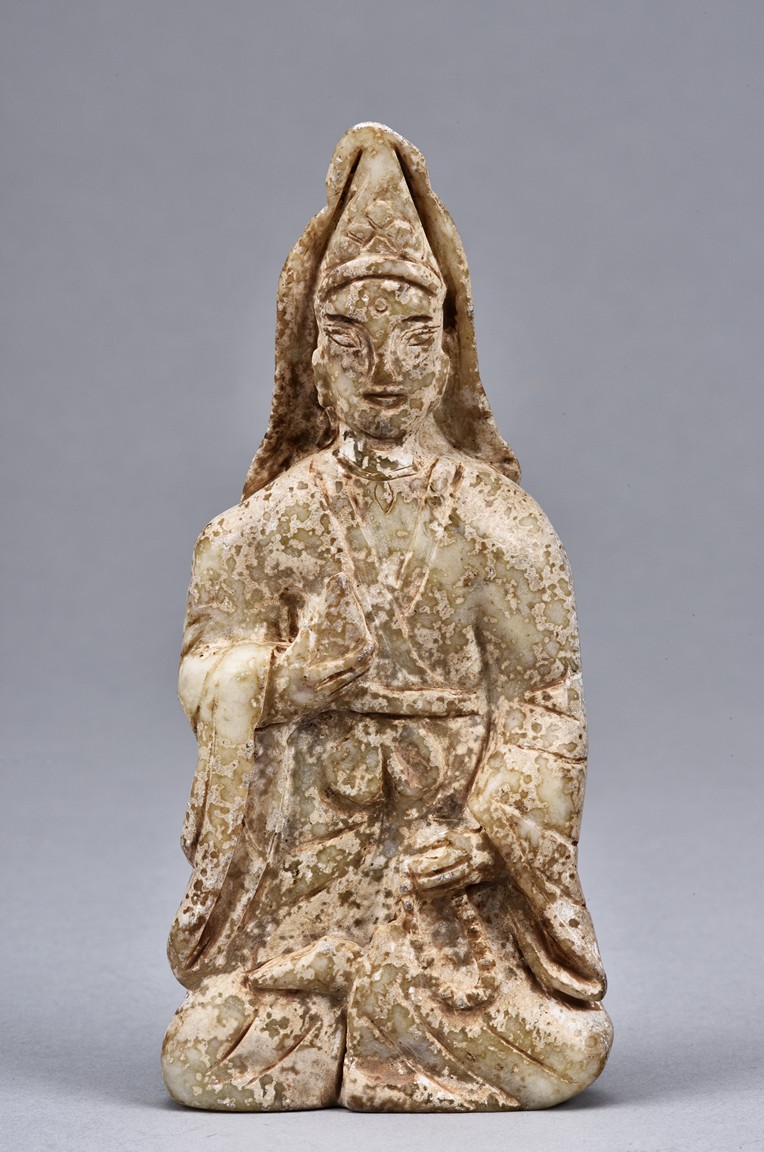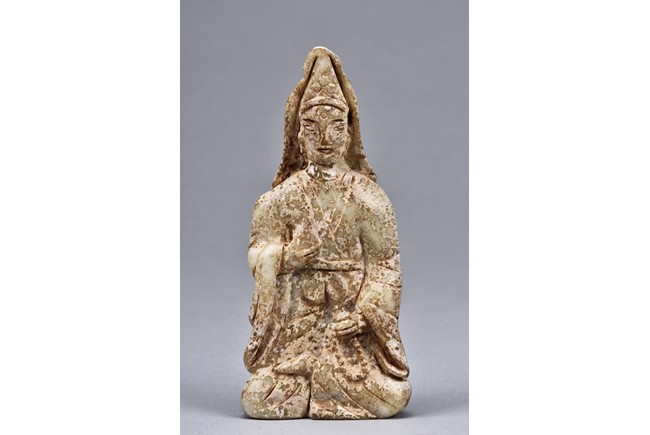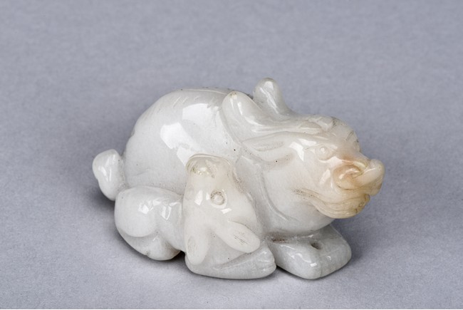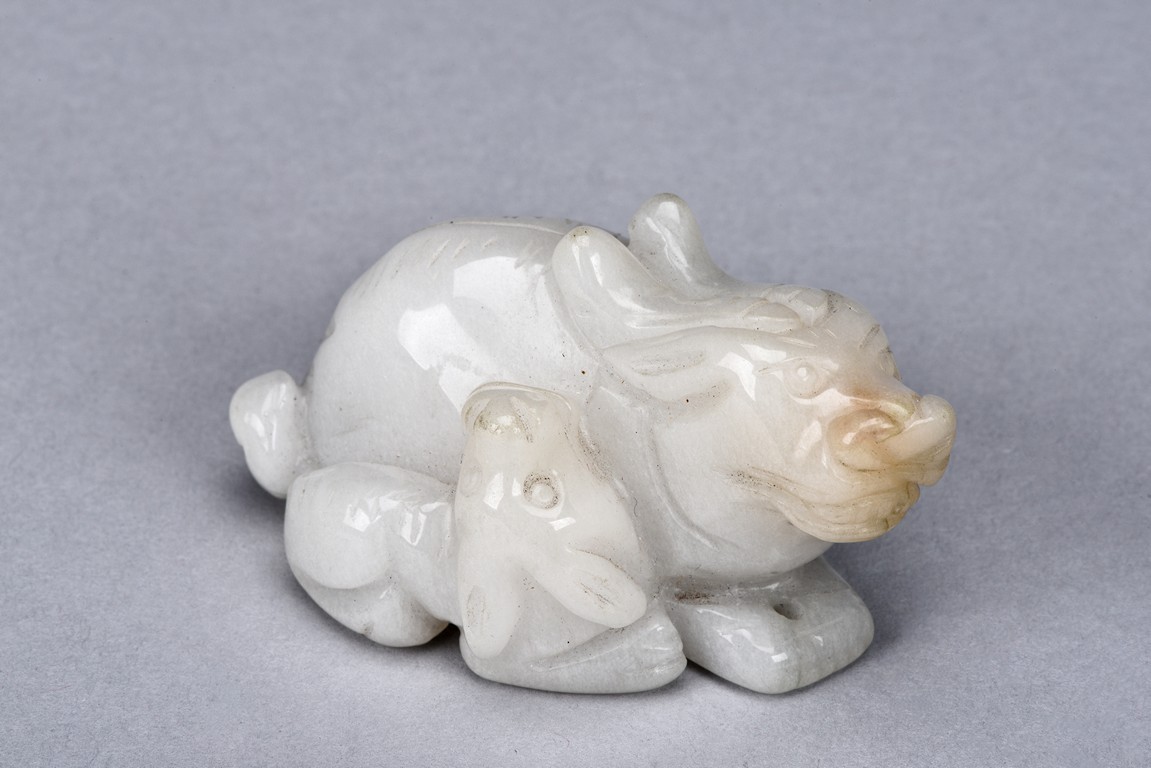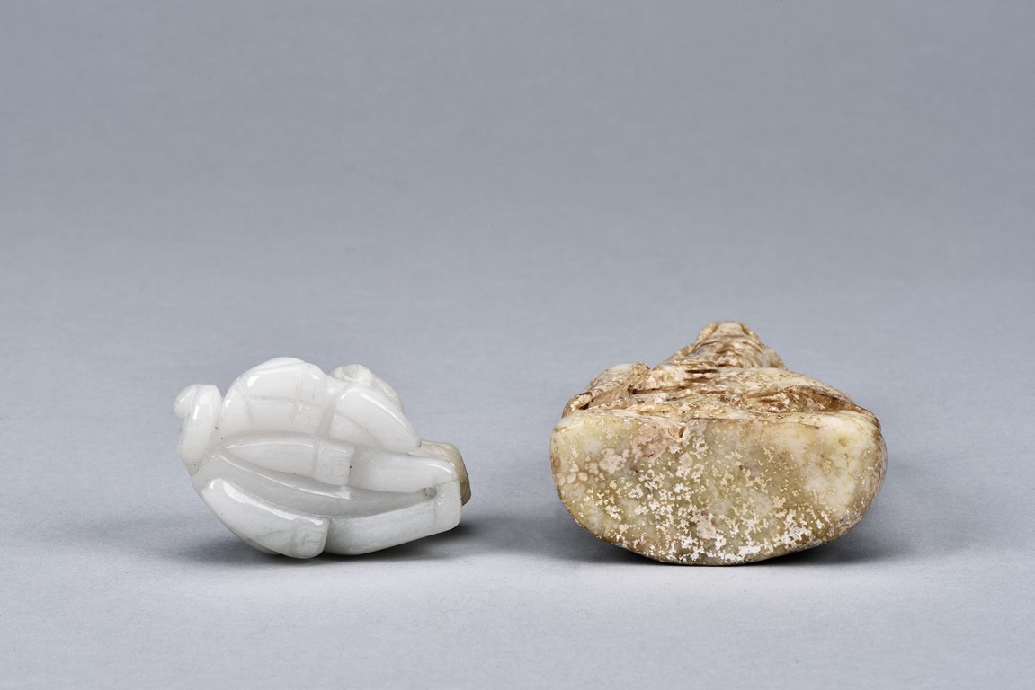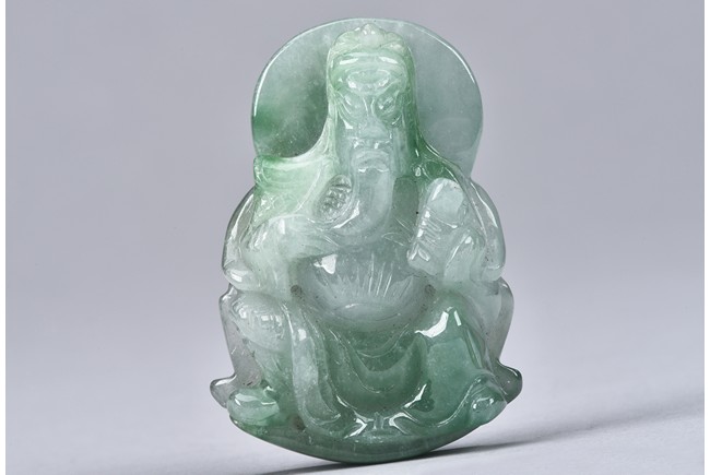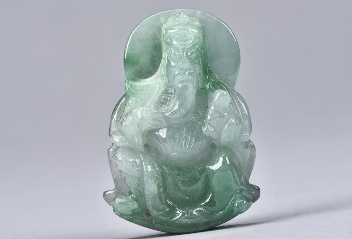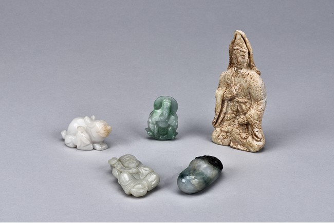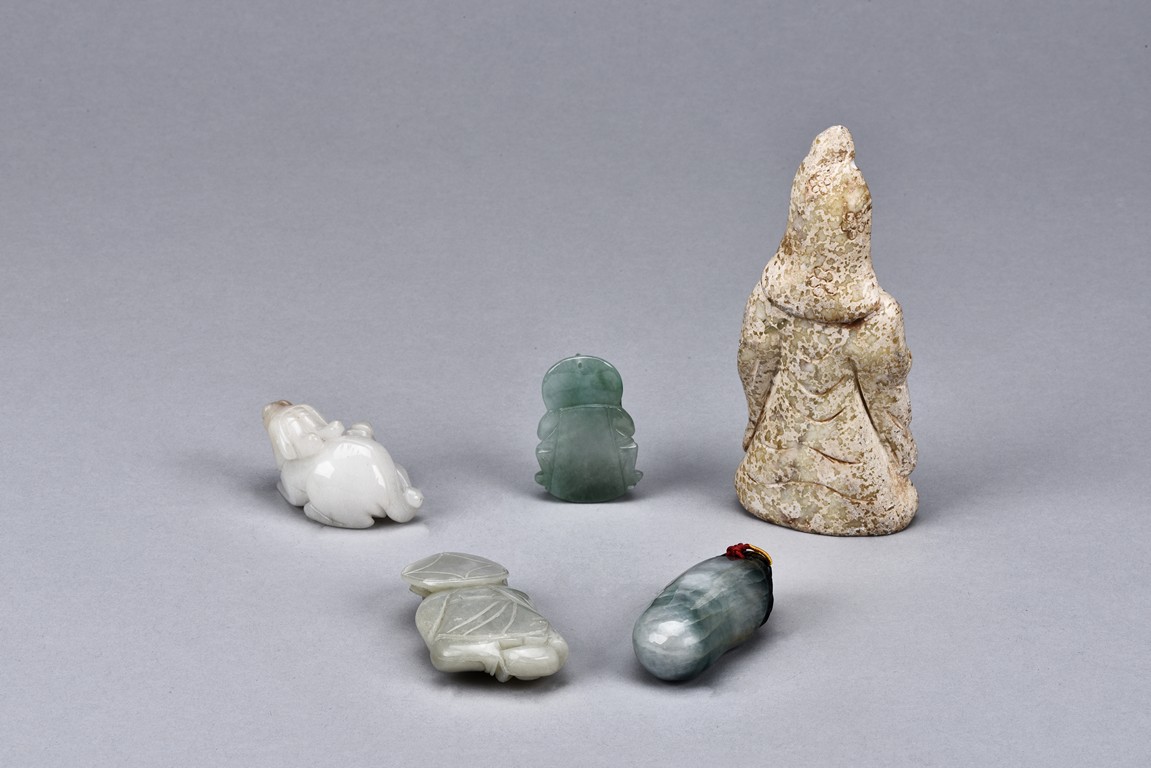Comprising of two jadeite objects, two white jade objects, and one jade buddha.