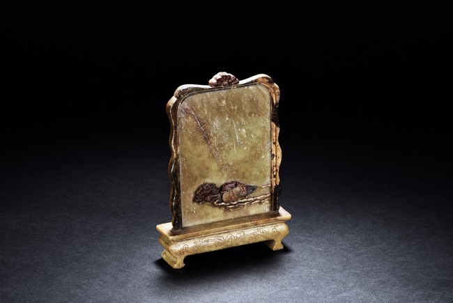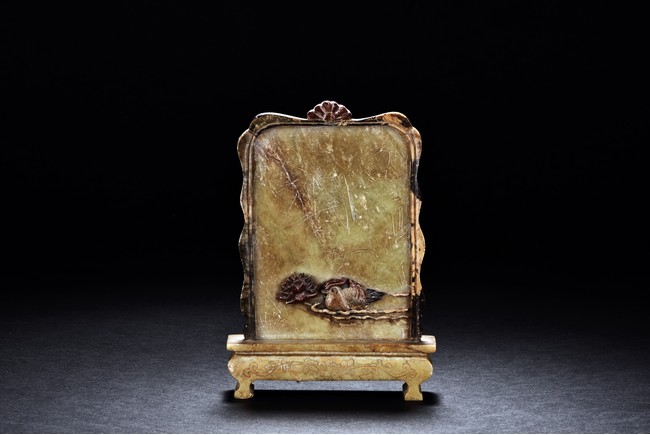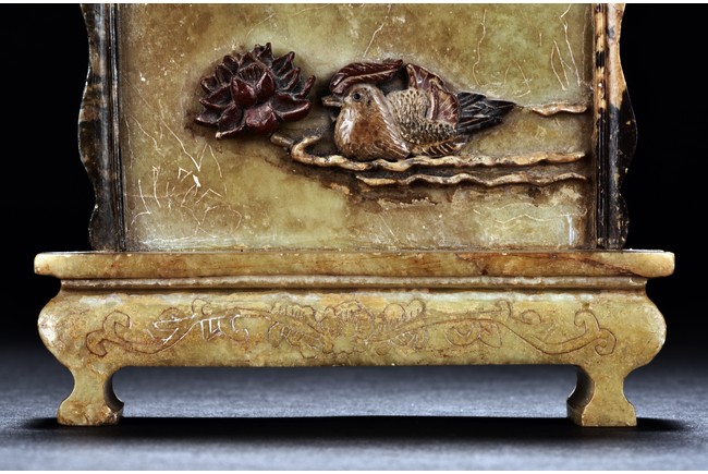 A STONE CARVED TABLE SCREEN 清 石雕花鳥小屏