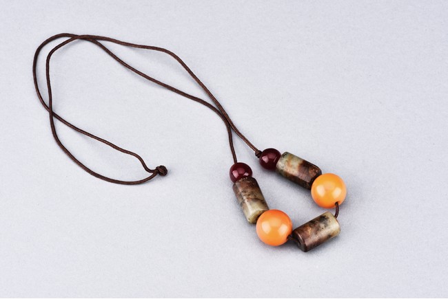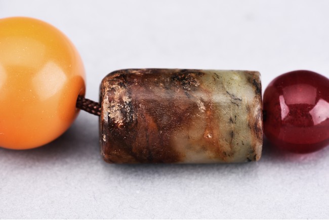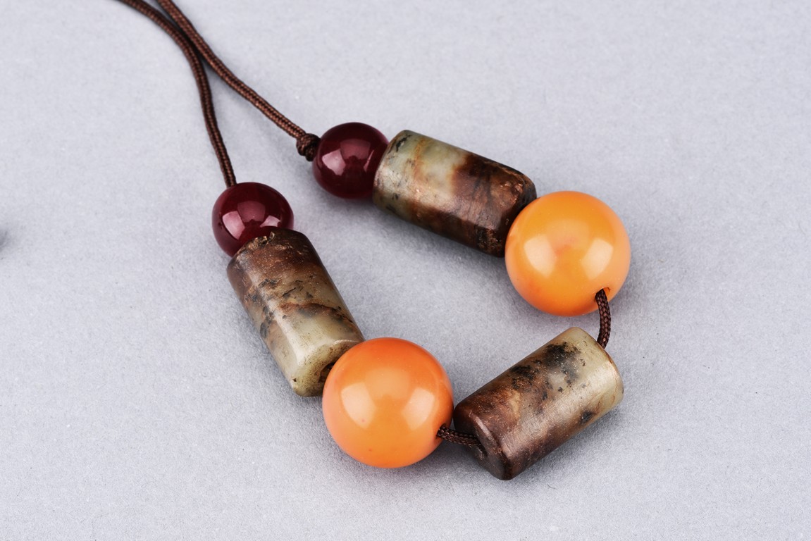 AN ARCHAIC JADE AND AMBER NECKLACE 舊玉蜜蠟珠鏈