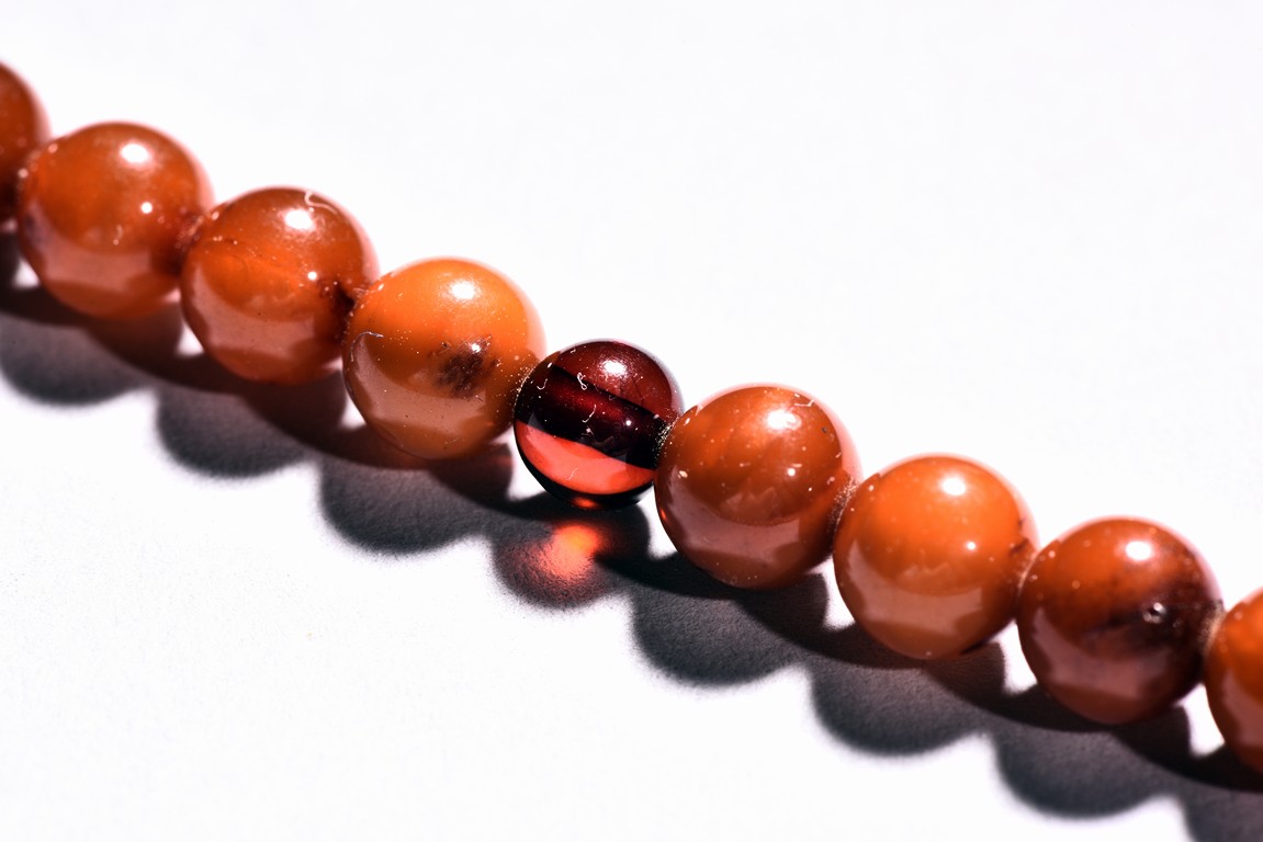 Comprising of numerous small rounded amber beads, varies from dark to light caramel tone.