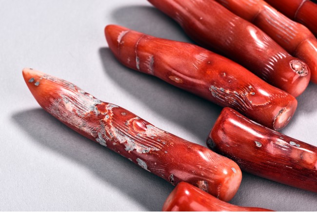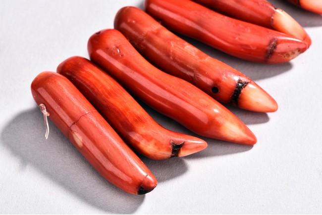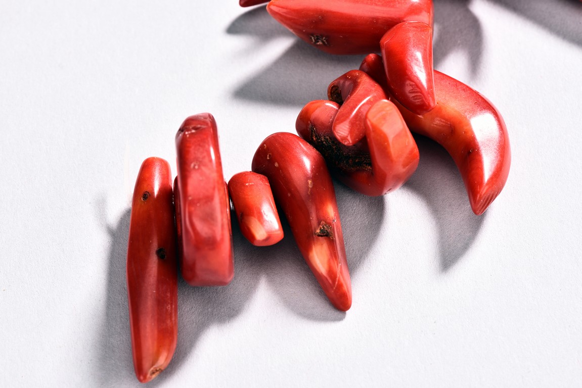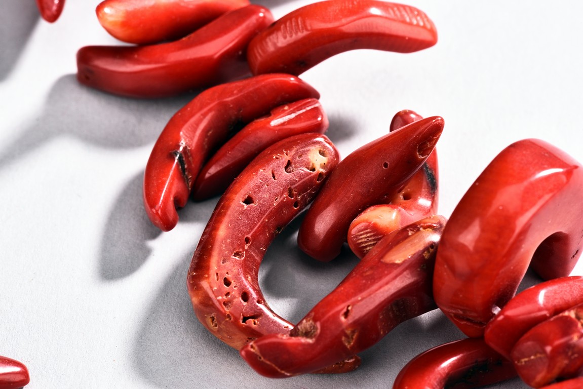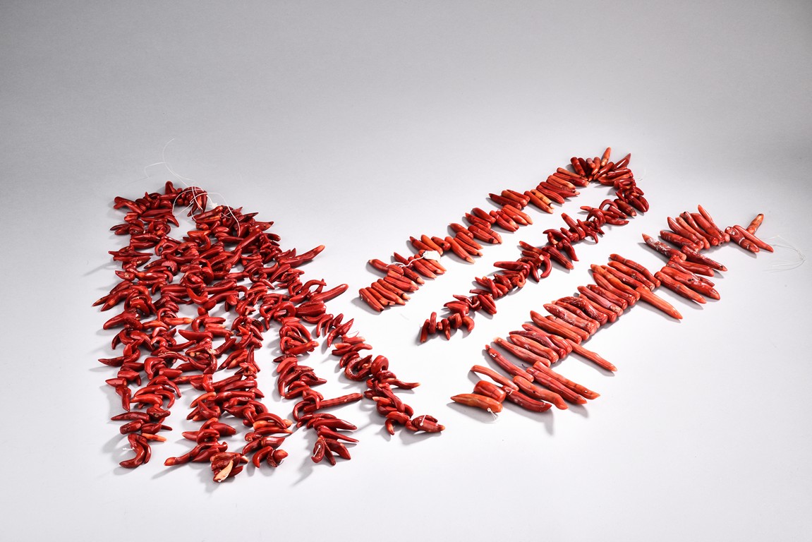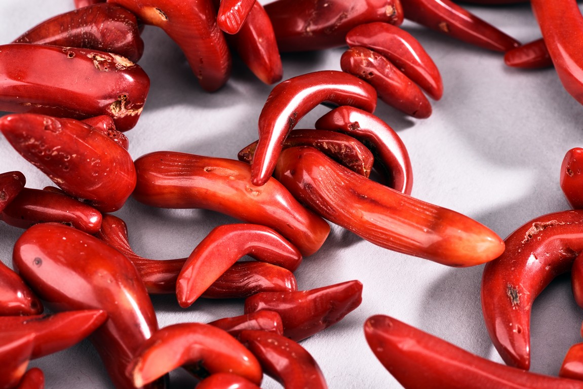 A GROUP OF CORAL OR CORAL-LIKE RED CHILI PEPPERS 紅珊瑚辣椒一堆
