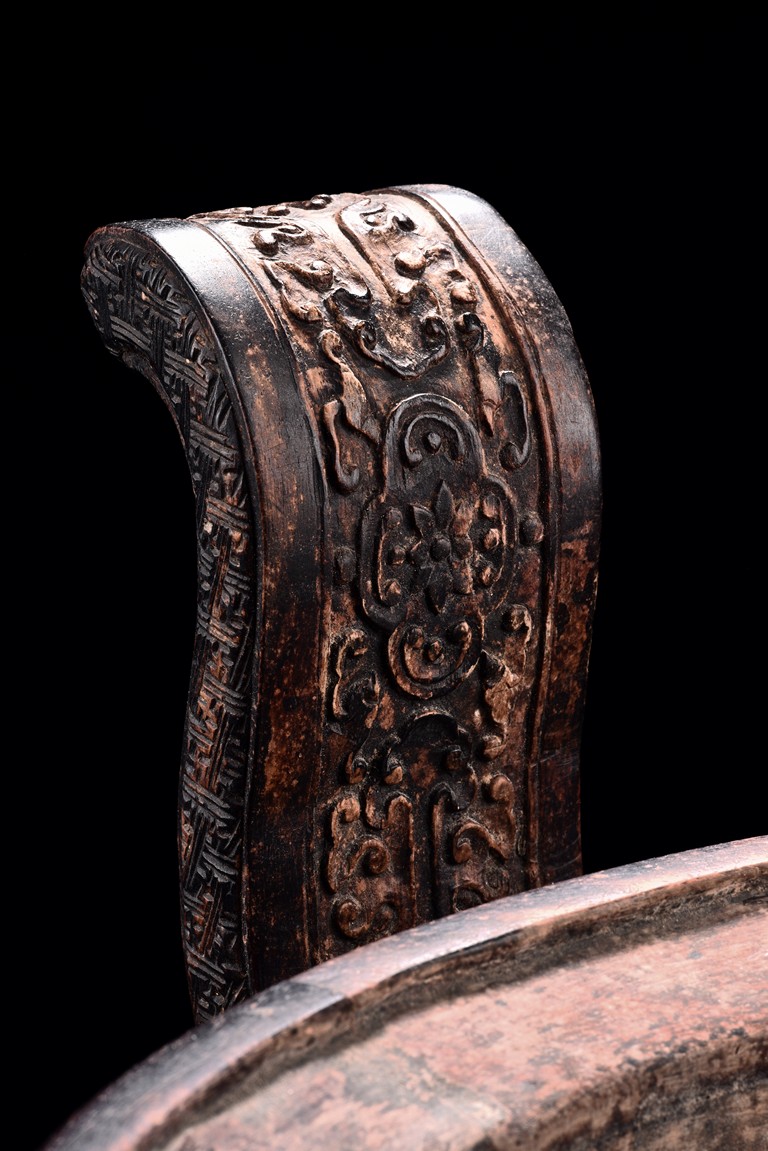 此香爐做工十分獨特,器身由硬木雕工而成,通體刻雲紋和仿古如意紋,包漿古樸,體型碩大,氣宇非凡,在歷次拍賣會從未出現,值得收藏