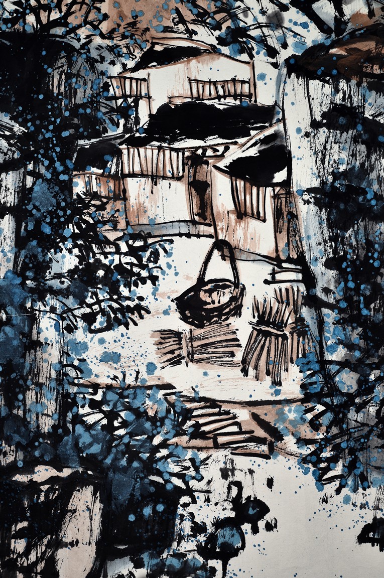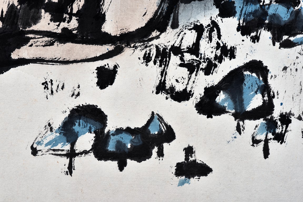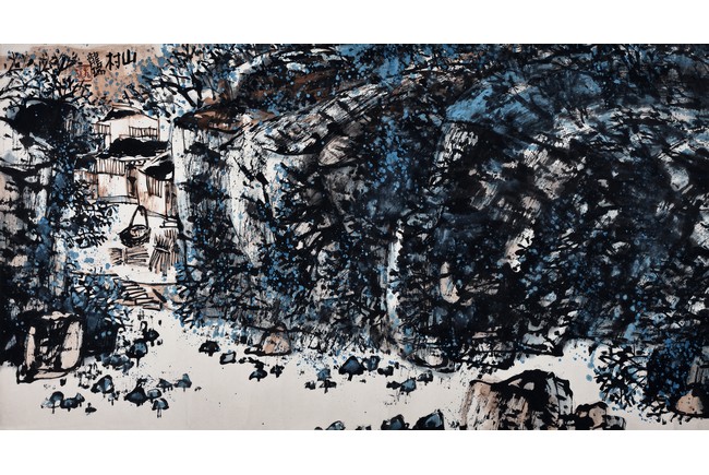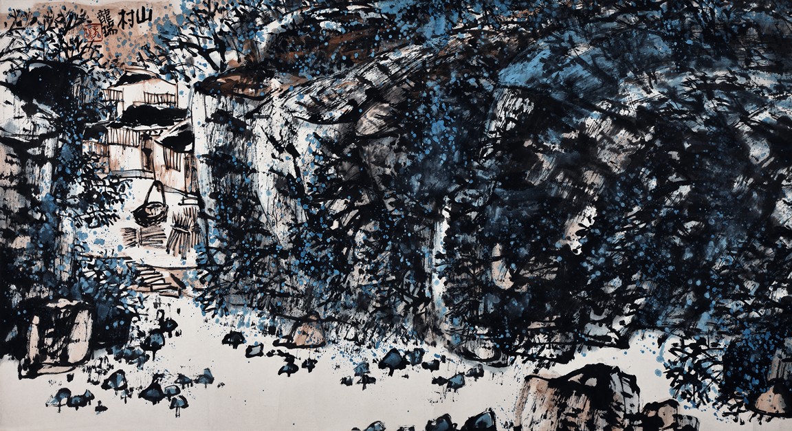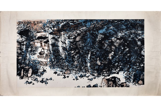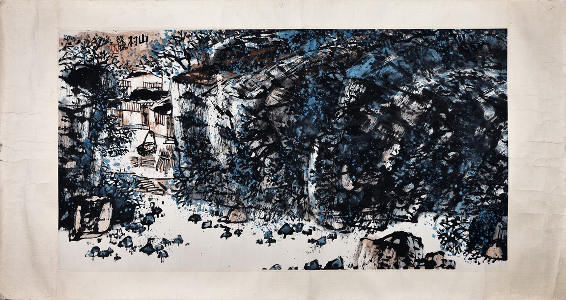 Long Rui (B.1946 - ) Mountain Village. Scroll. Color and ink on paper. Signed and with one seal mark of the artist.