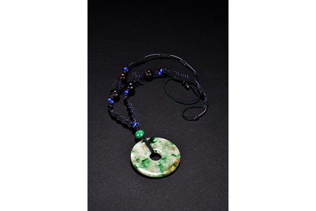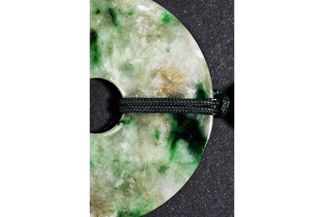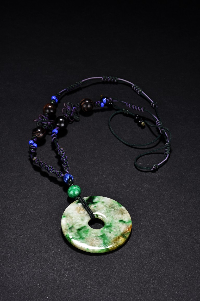 A CIRCULAR JADEITE DISC PENDANT 翡翠璧掛件