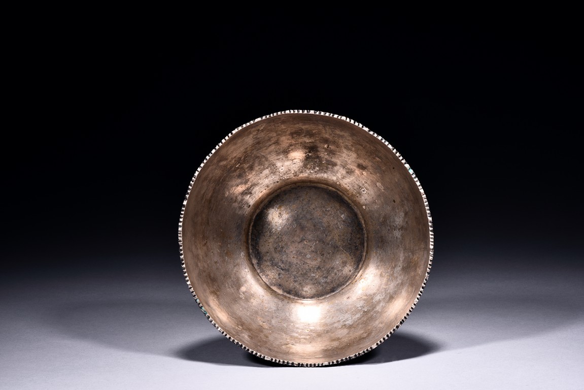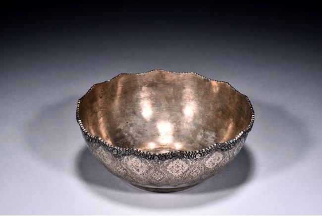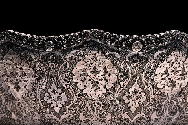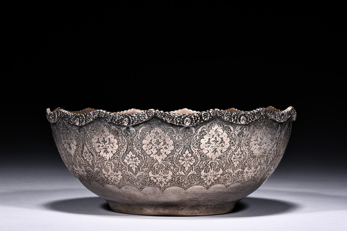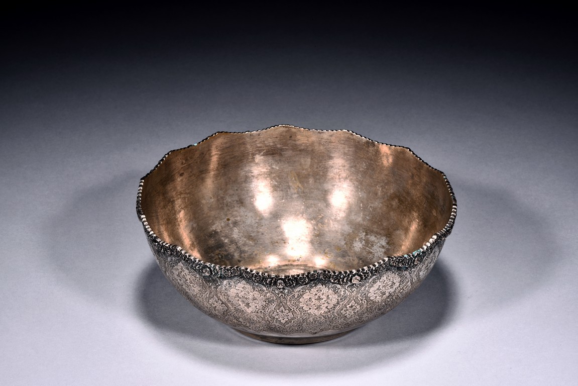 Russian. The exterior finely etched with floral scrolls pattern and rise to foliate mouth rim. The bottom bears a pictograph mark and an '84' mark. 19th Century.