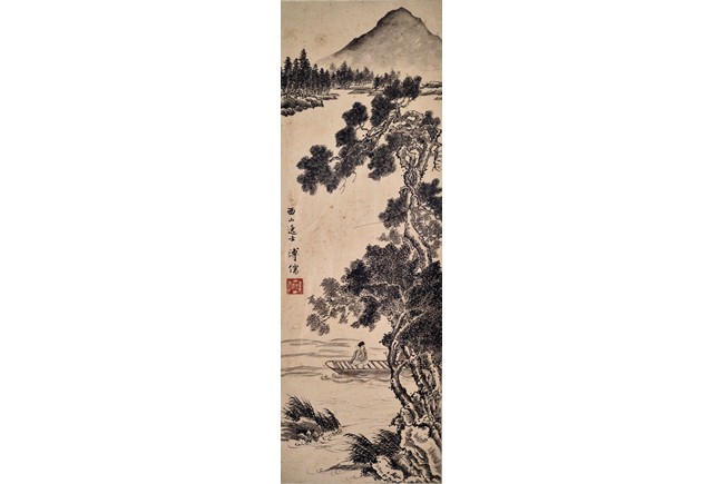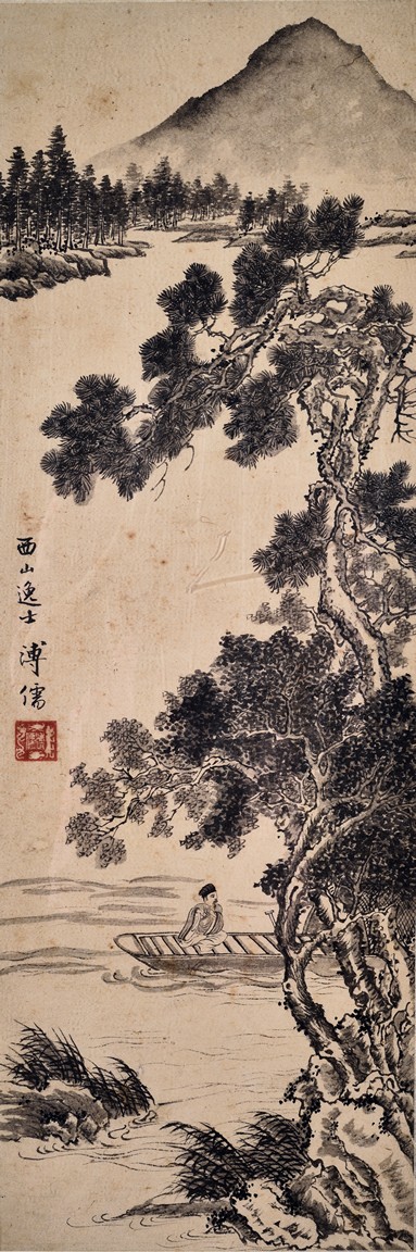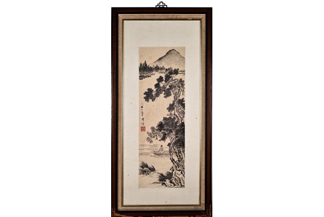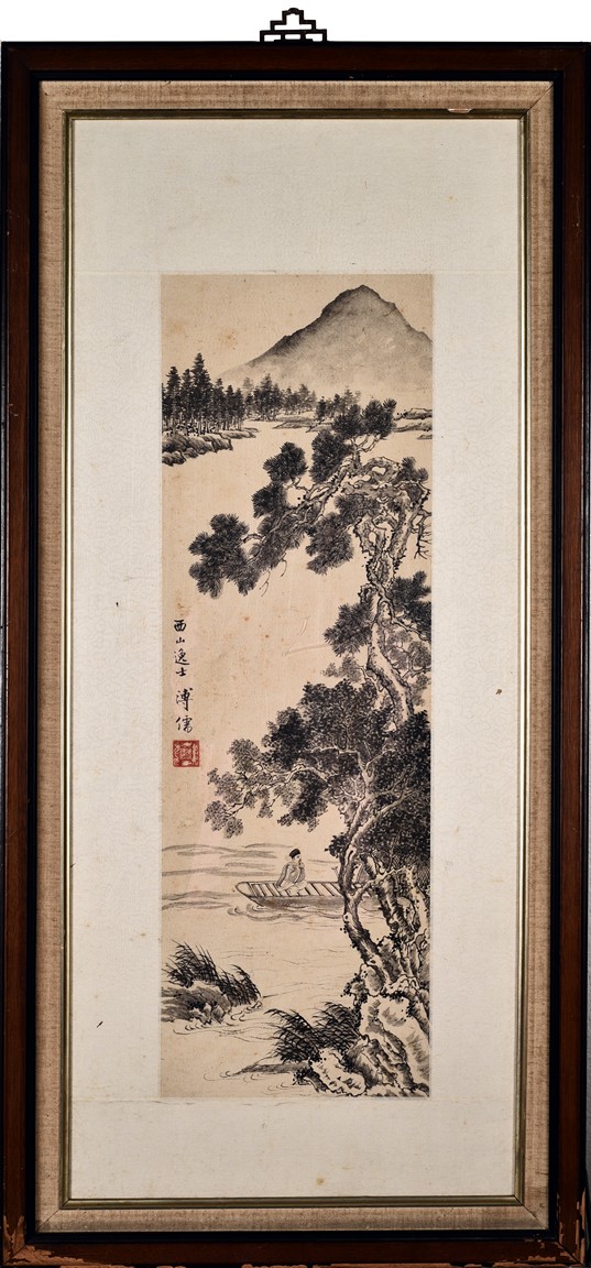 Mounted and framed. Ink on paper. Literati of the West mountain. Signed by the artist. With one seal mark of the artist.