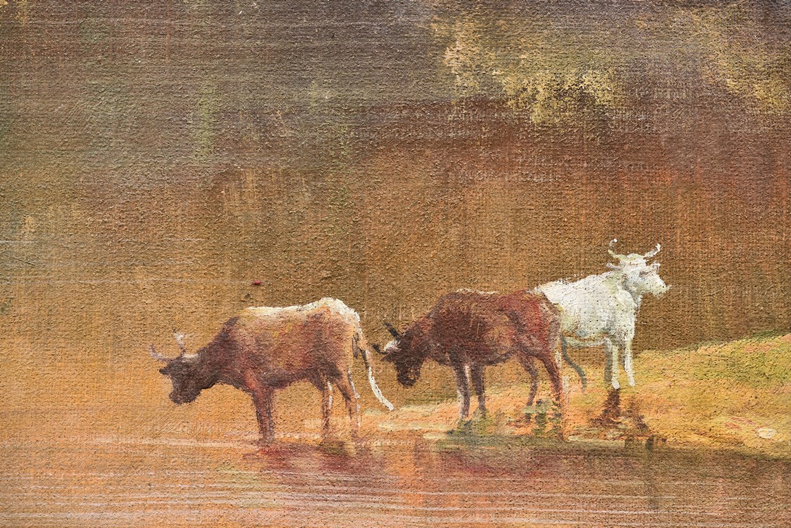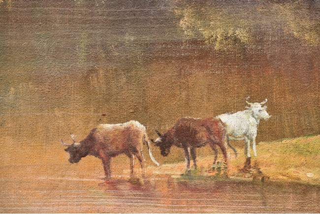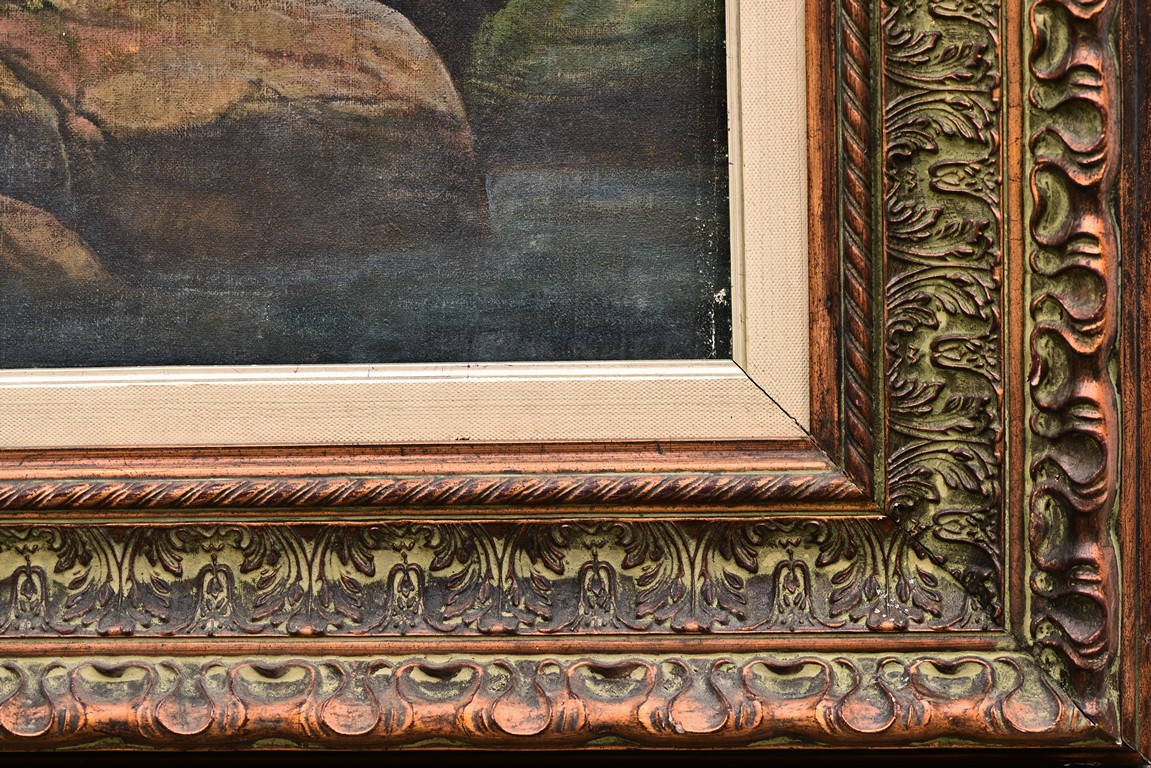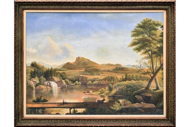 Anonymous. Oil on canvas. Framed. Depicting an countryside scenery.