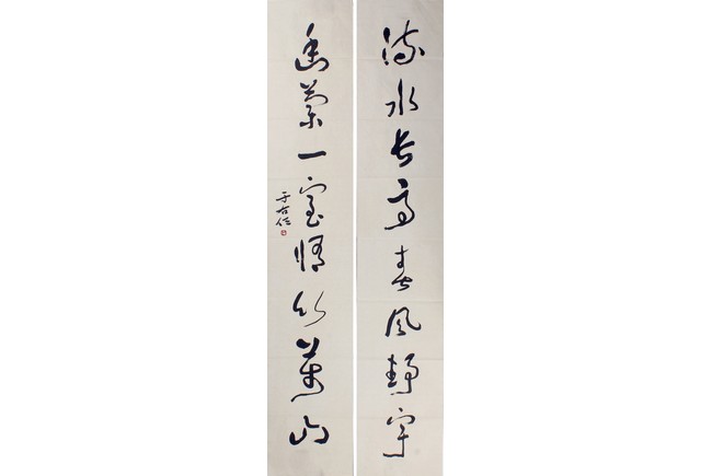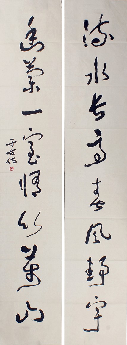 YU YOUREN: CALLIGRAPHIC COUPLETS IN CURSIVE SCRIPT 于右任 草書八言聯 水墨纸本