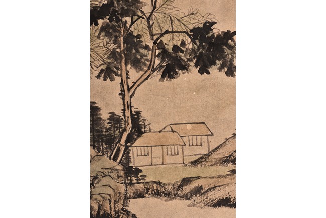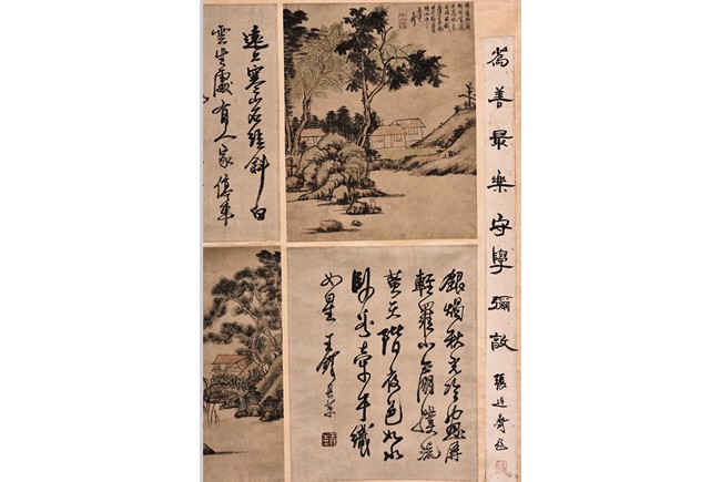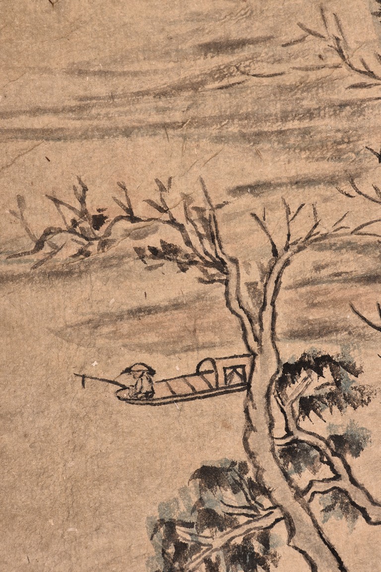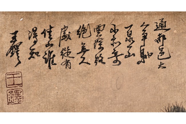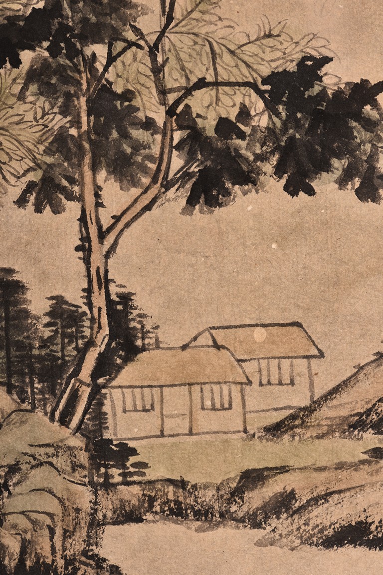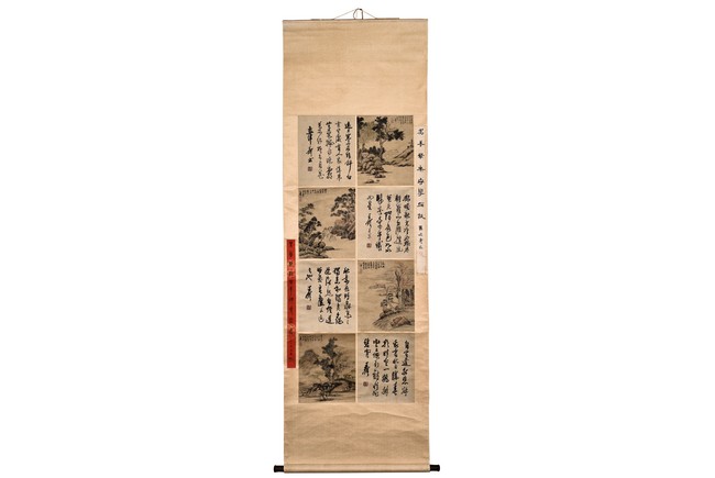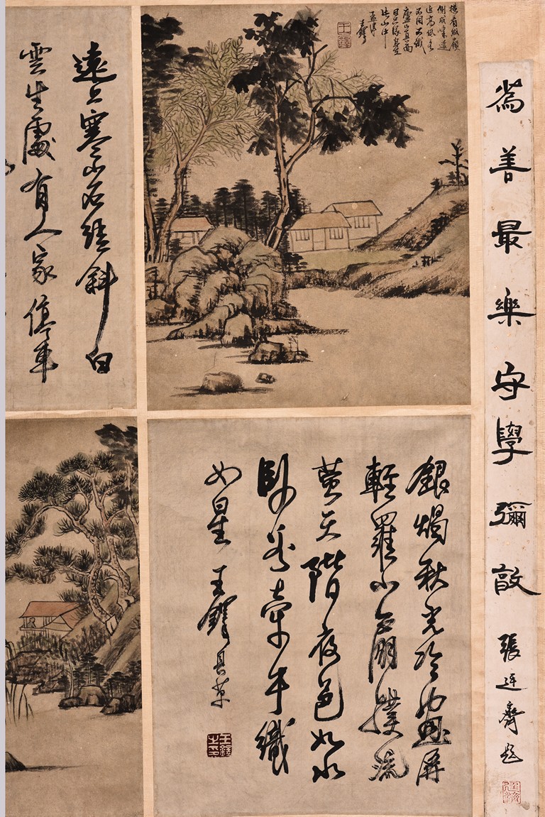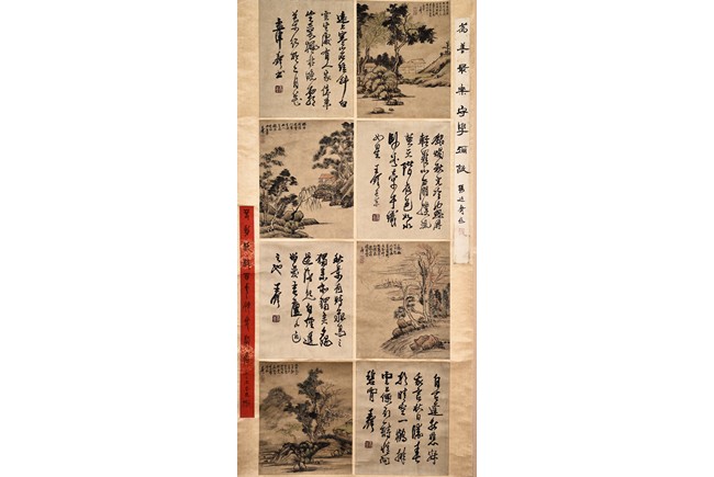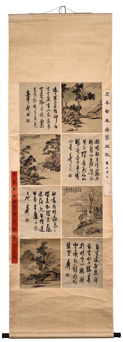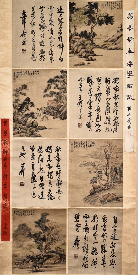 Autumn Scenery. Color and ink on paper. Eight leaves. Hanging scroll. Inscribed with poem, signed, and with three seal marks of the artist. Attributed to Wang Duo.