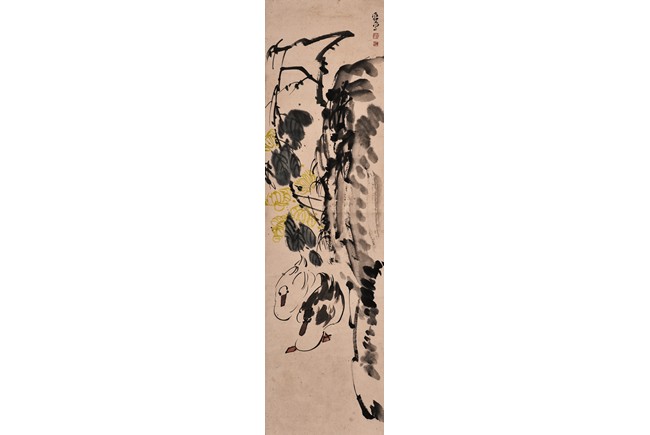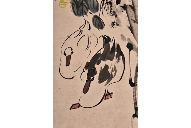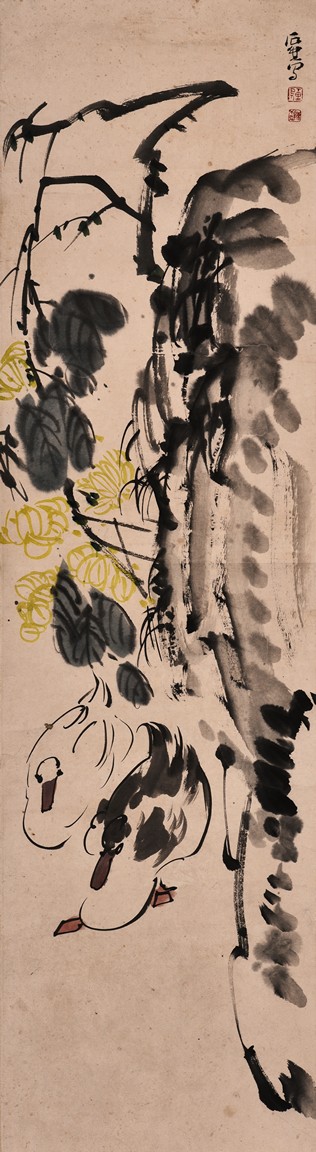 A COLOR AND INK ON PAPER PAINTING 鴨 設色紙本 立軸