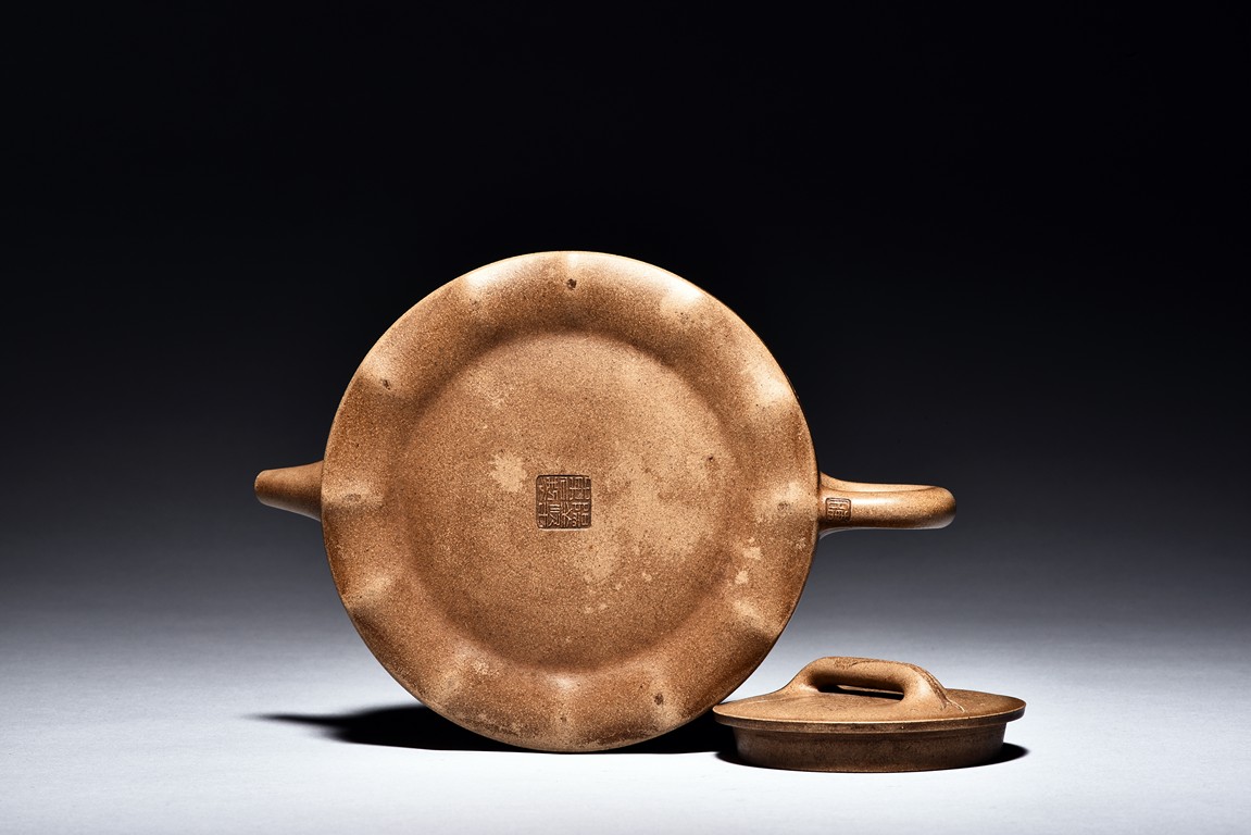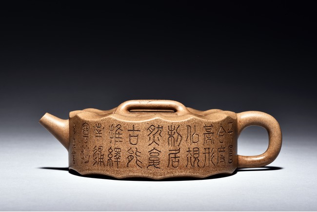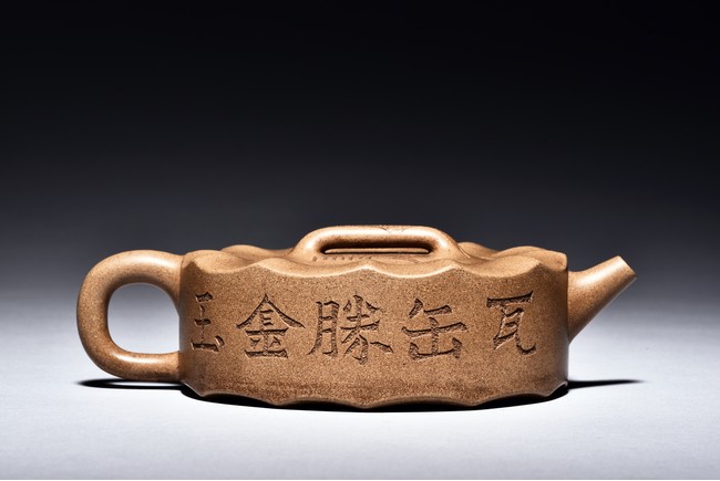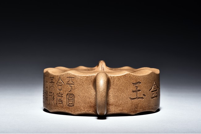 Bonhams, Hong Kong May 26 2014, Lot 308. Also compare a very similarly formed teapot, with inscriptions around the body and a goose-from top handle, signed Wang Shengchang, inscribed by Yuefeng, is illustrated in Yixing Pottery, Hong Kong, 1981, p.138, no.78.
