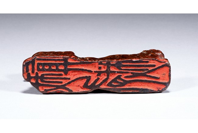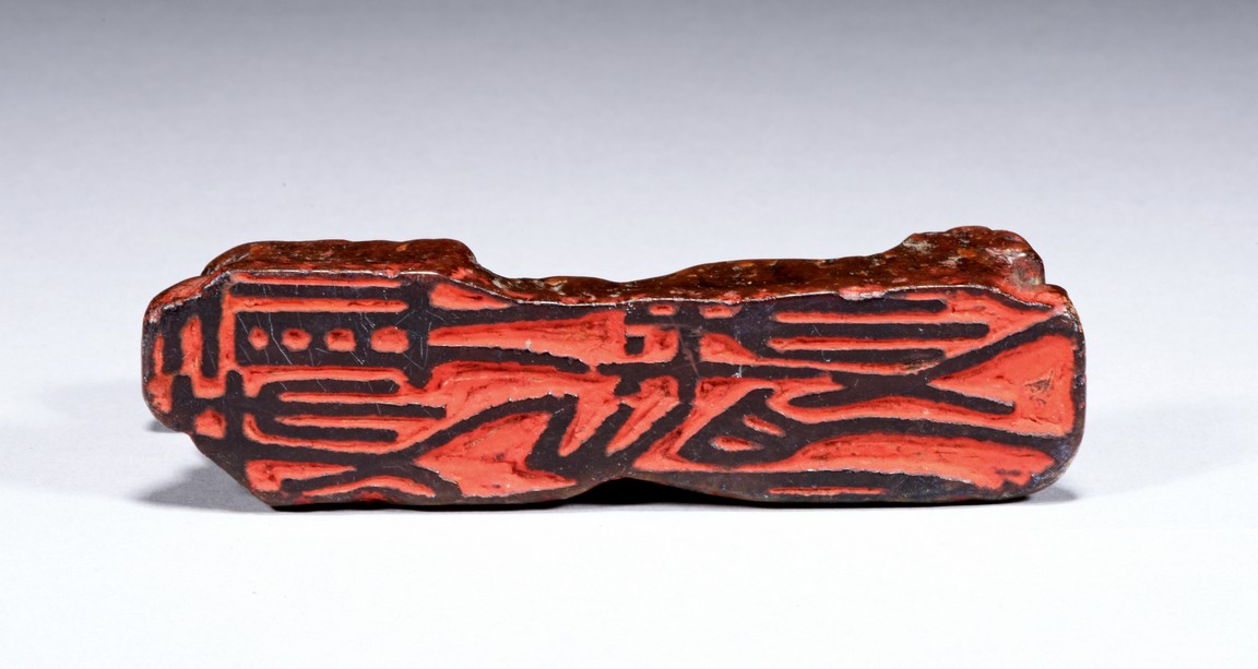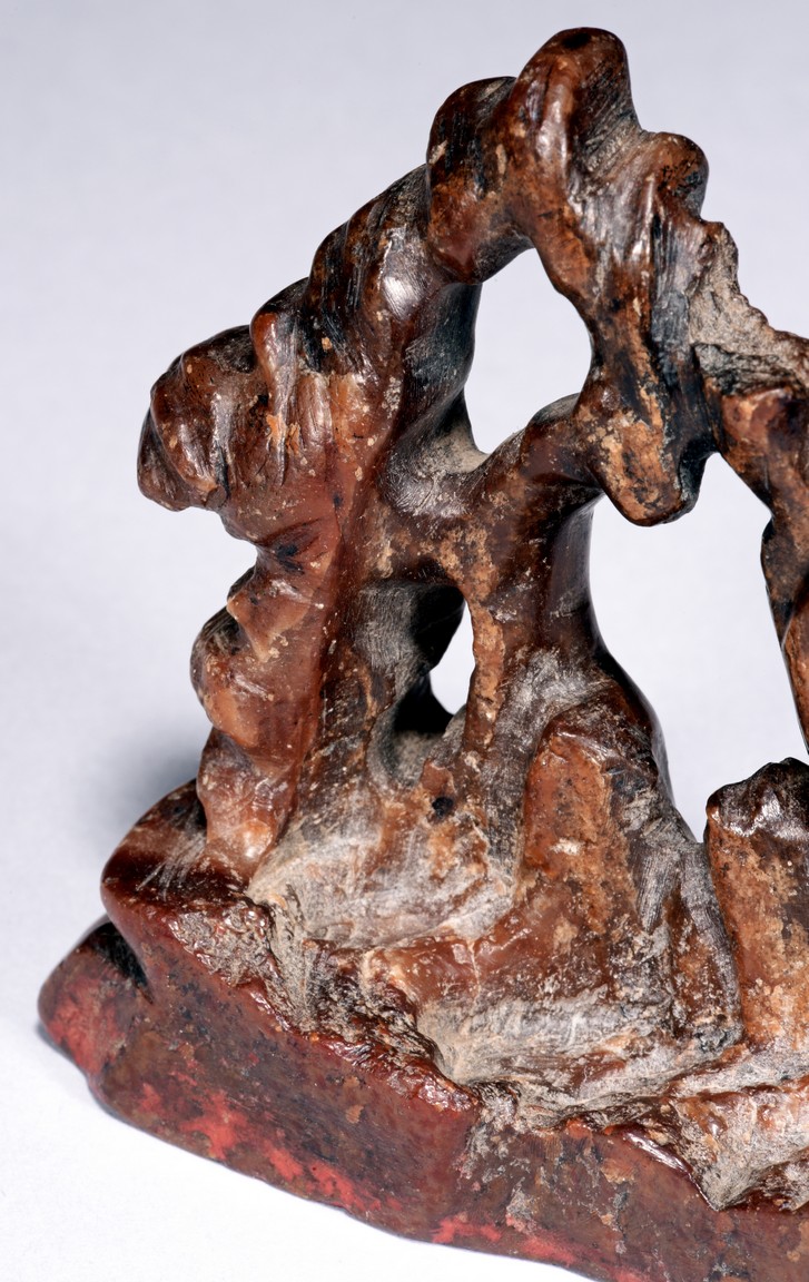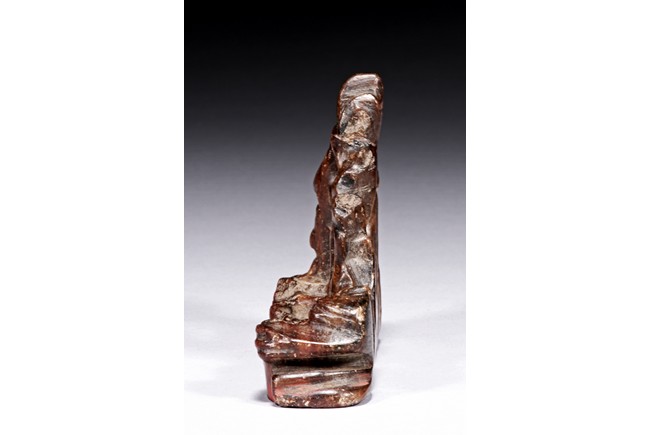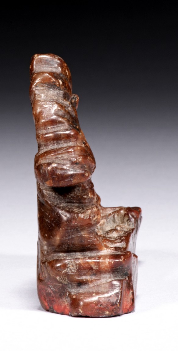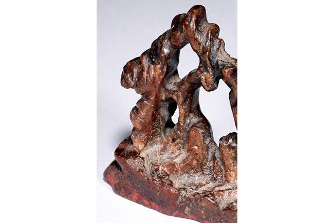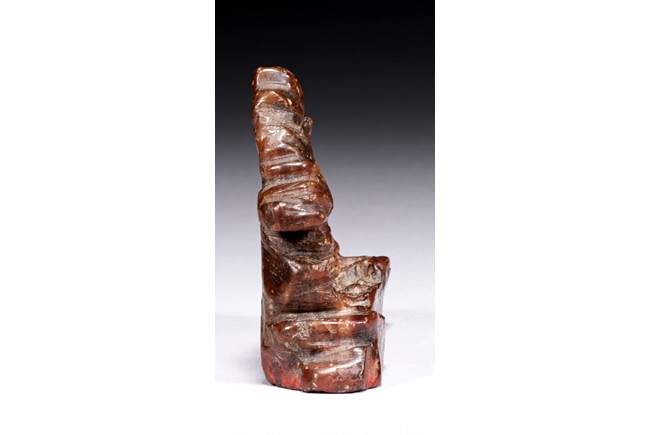 Of naturalistic form, the stone resembling high mountain with peak and irregular perforations.The seal base inscription. Qing Dynasty period.