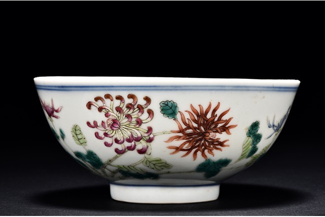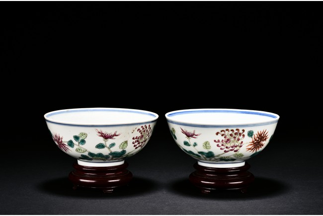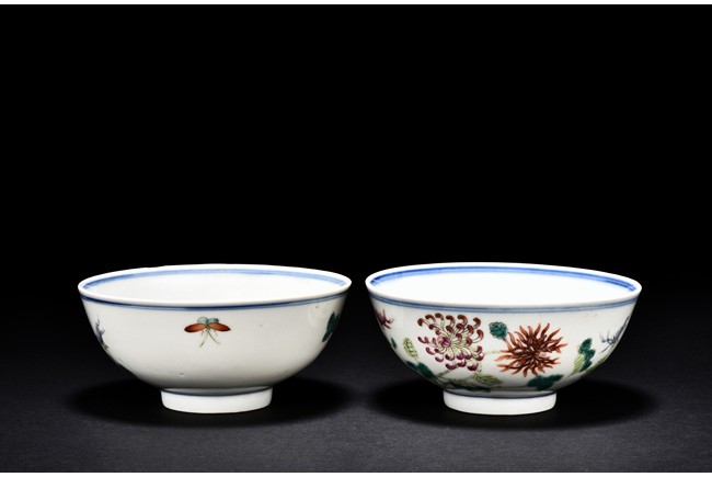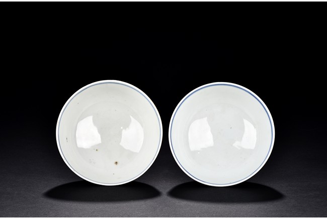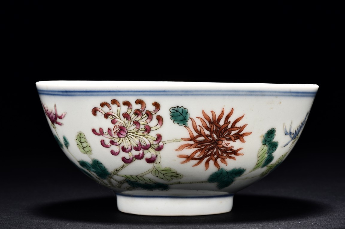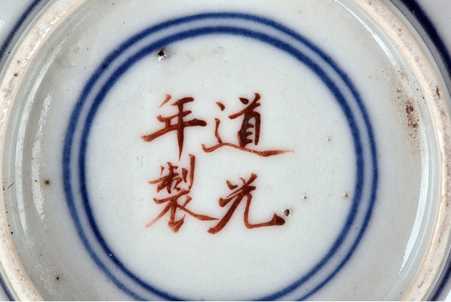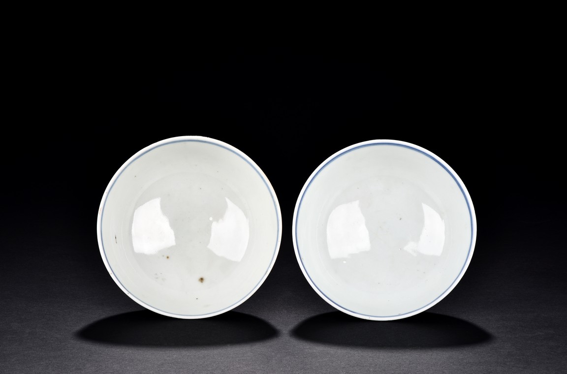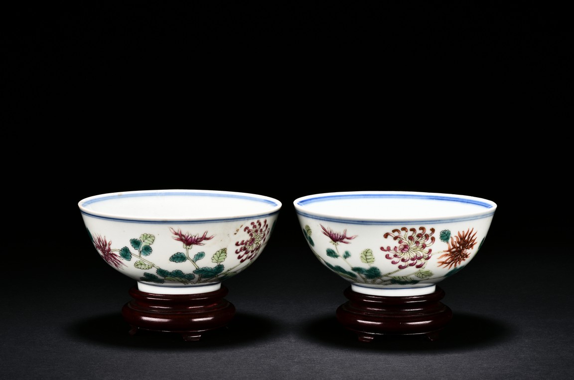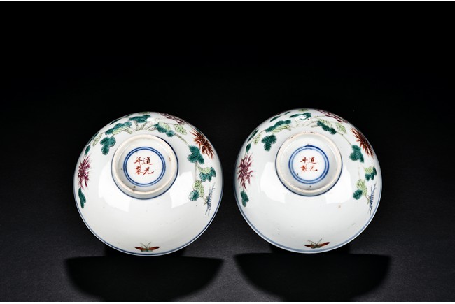 Each bowl is painted with leafy chrysanthemum to the exterior, with double line roundel along inside and outside of mouth rim, the bottom with four character 'Daoguang' mark within double line roundel. Republic period.