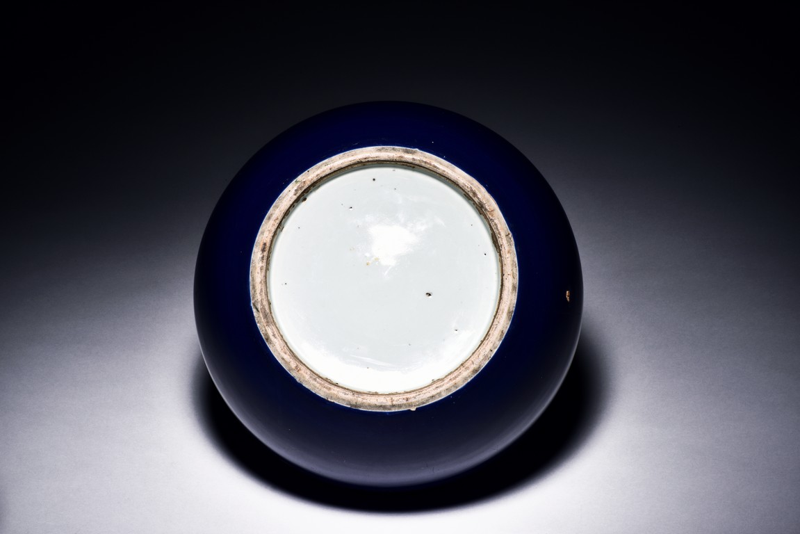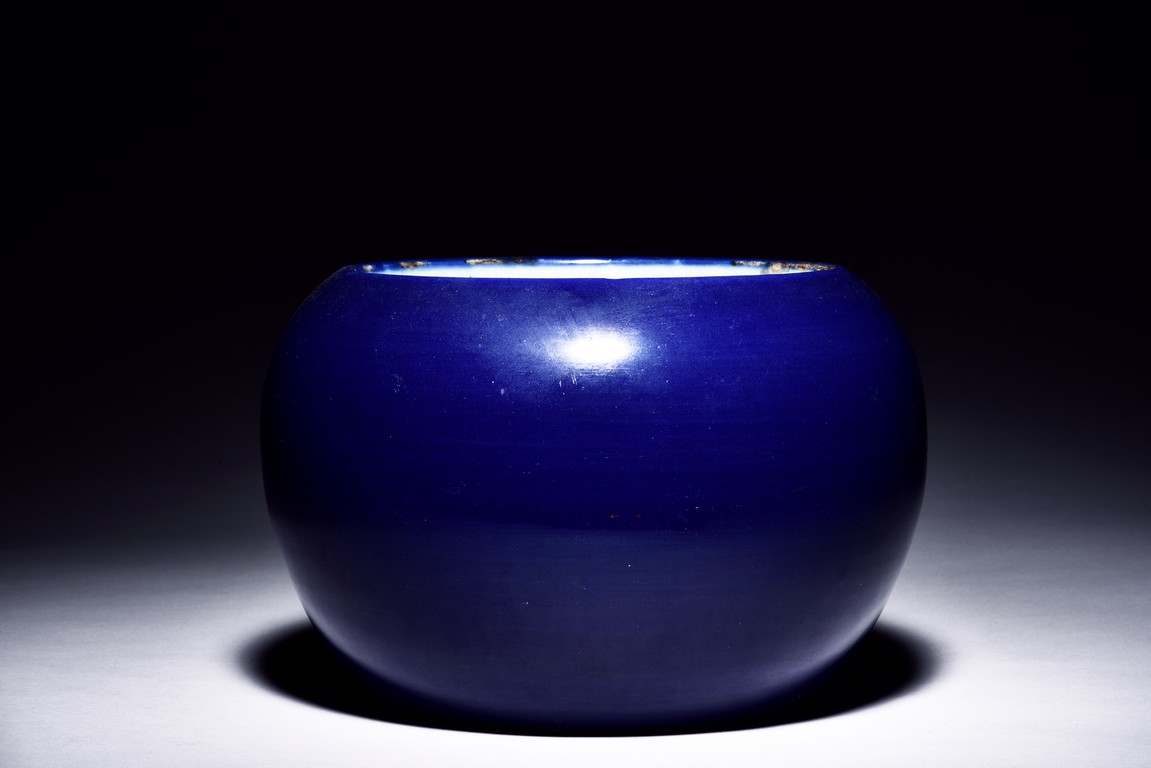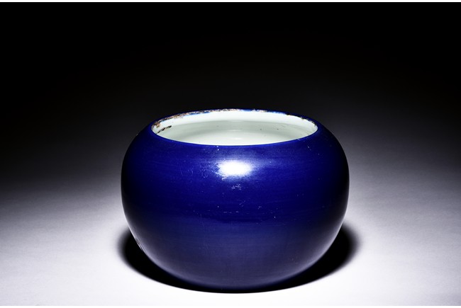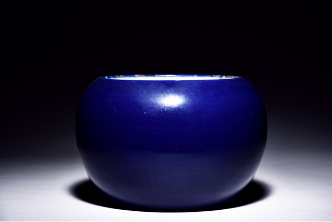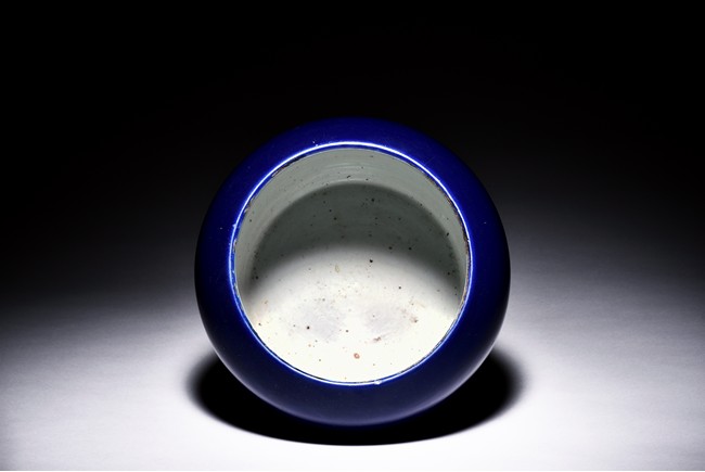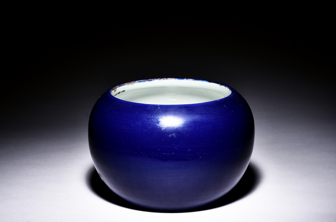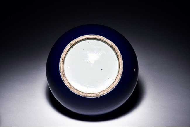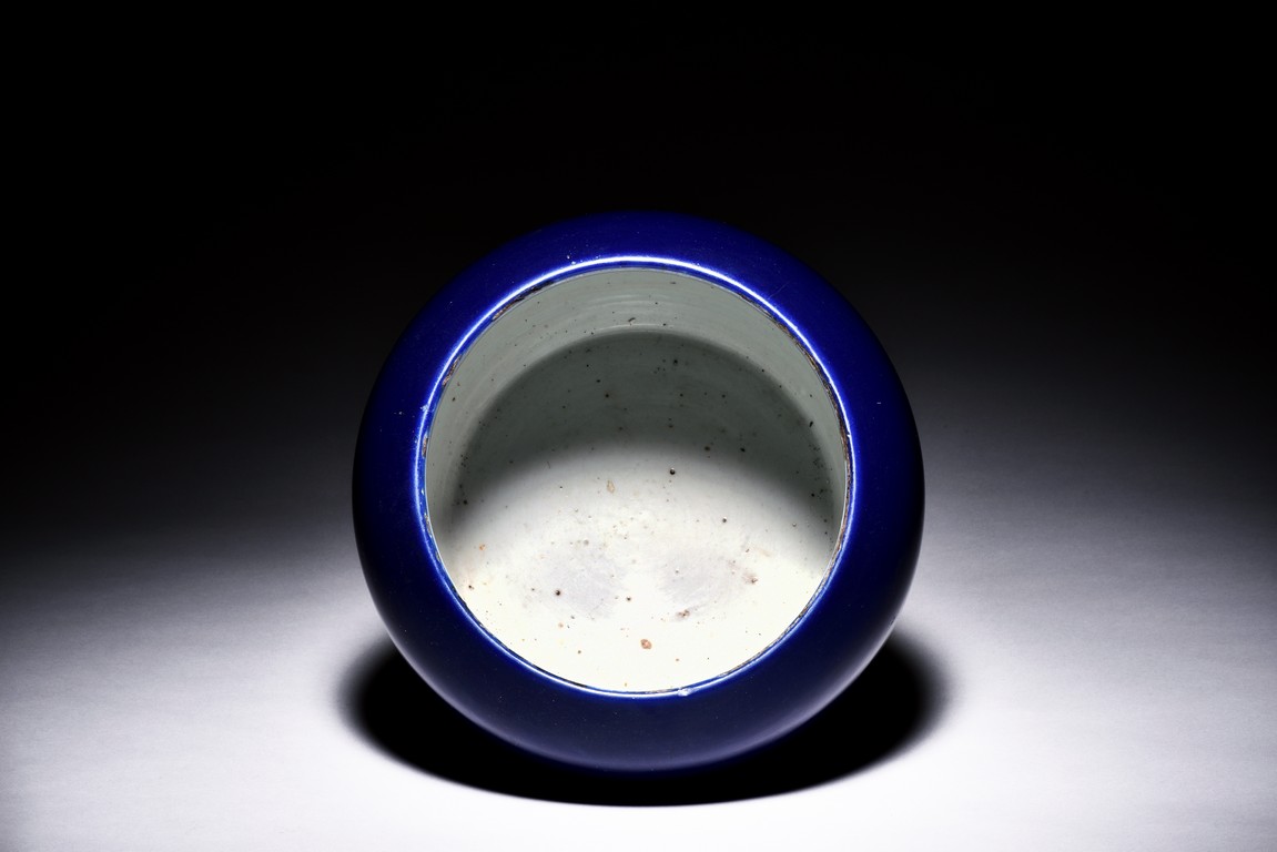 The high rounded shoulder tapering gently to the base, the mouth rim inturned, the exterior covered overall with a glaze of impressive sacrificial blue green tone. Qing Dynasty period.