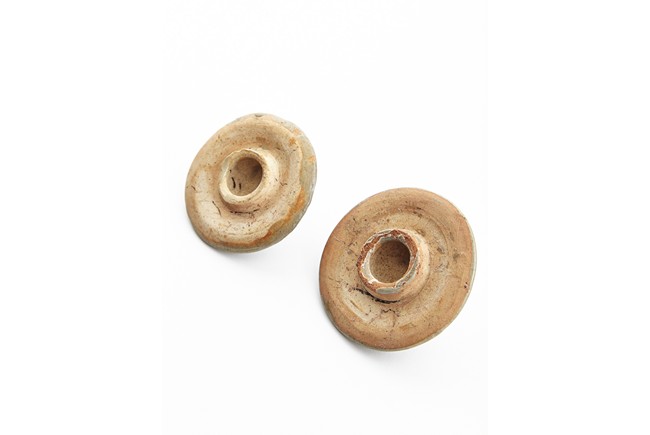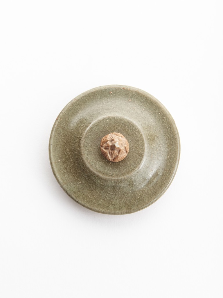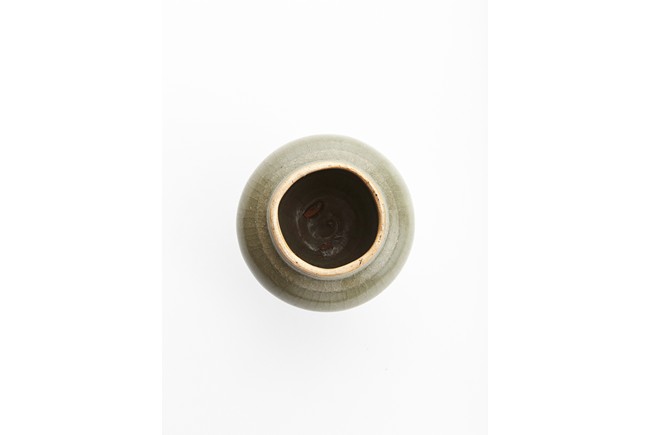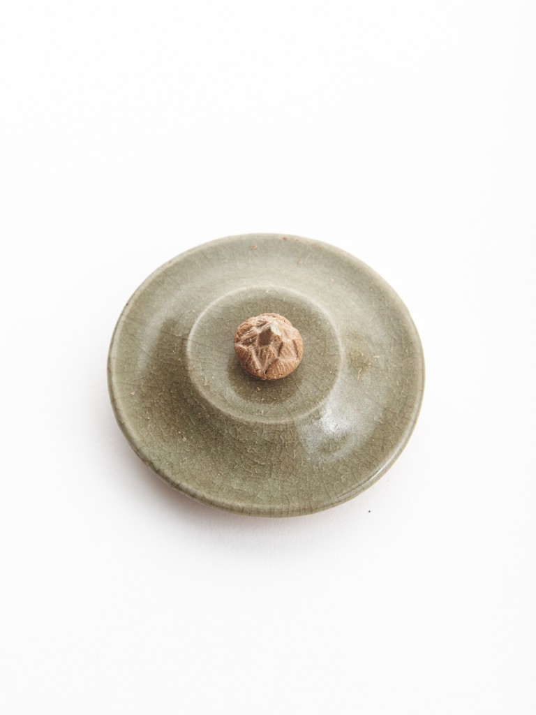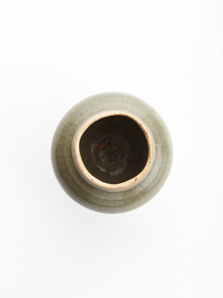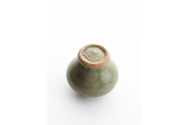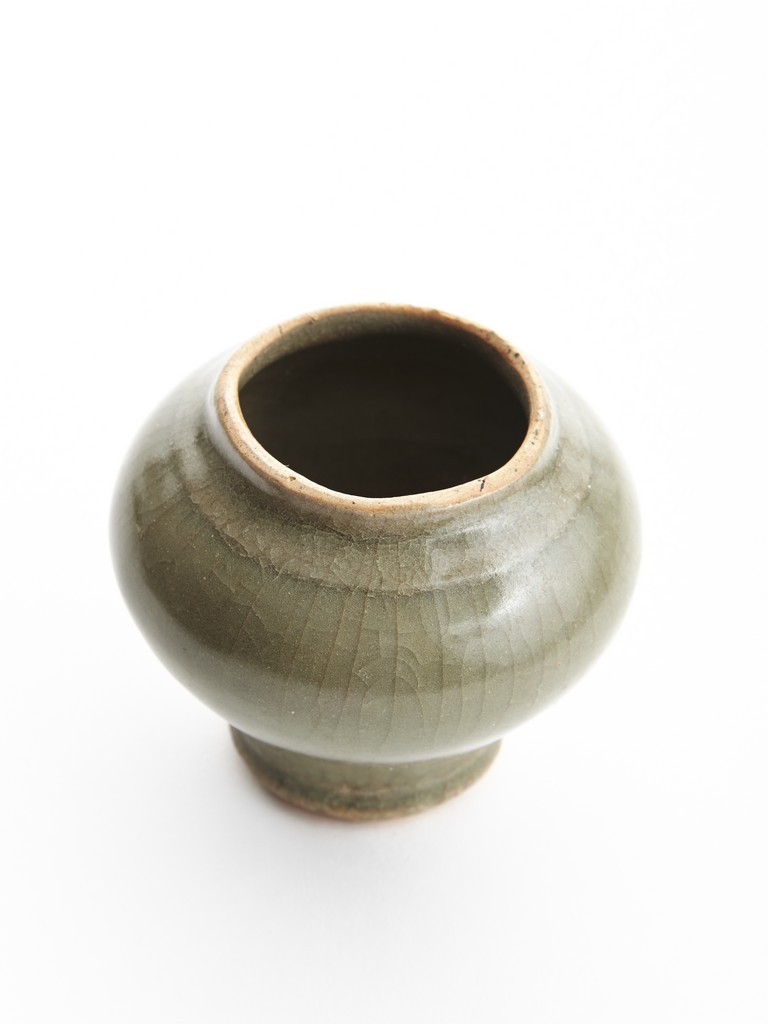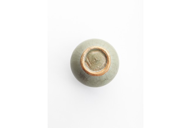 Each well-potted and with globular form body, the cover modelled with a unglazed lotus bud finial, the jar overall covered with attractive pale celadon green glaze. Yuan Dynasty period.