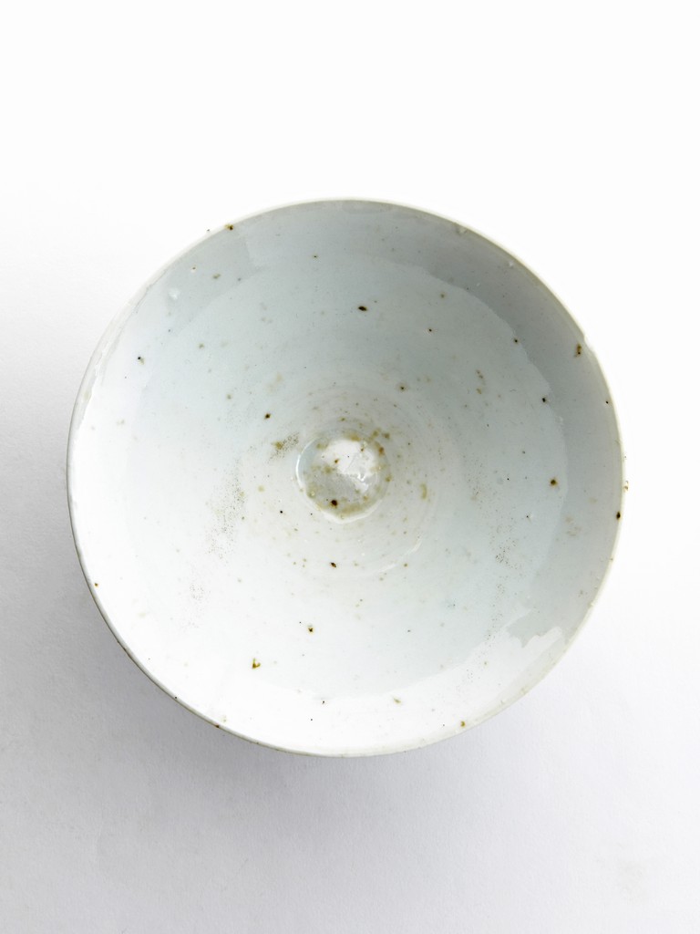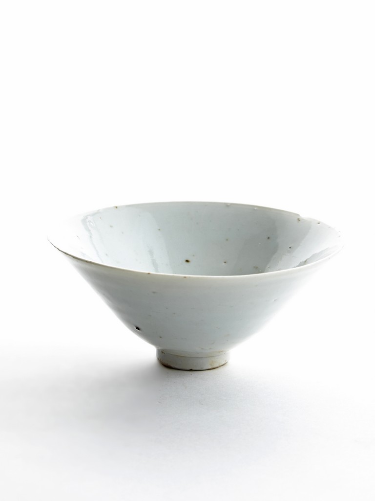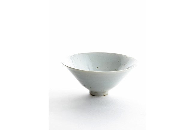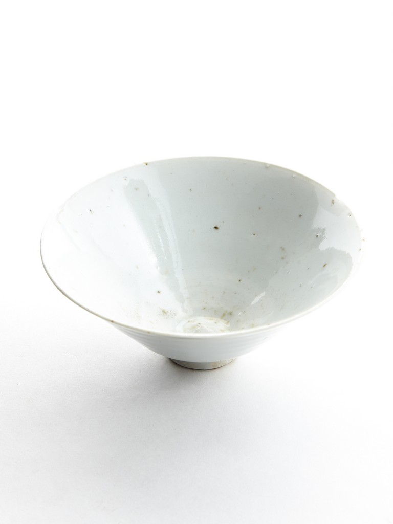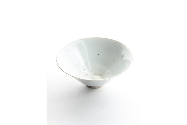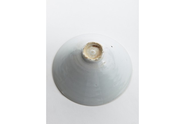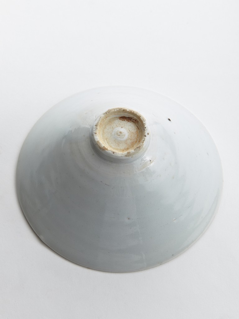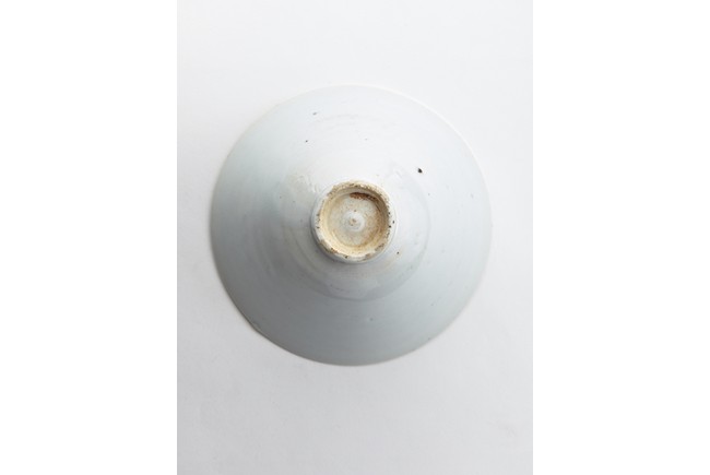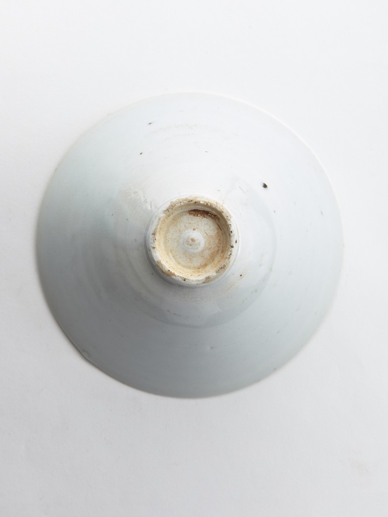 Rising from a circular foot ring, the body covered overall with attractive pale blue-greenish white glze.