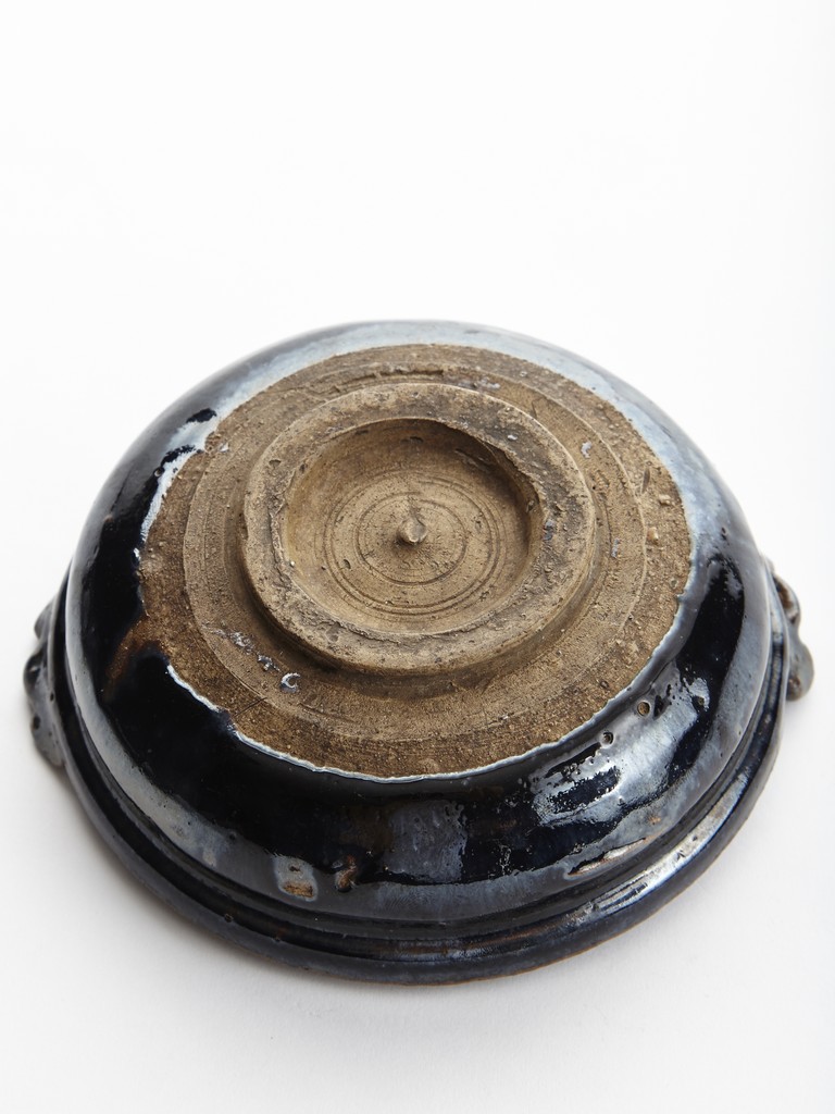 The bowl overall covered with bluish black glaze, the rim with two handles. Song Dynasty period.