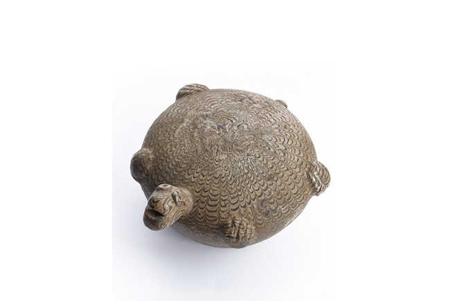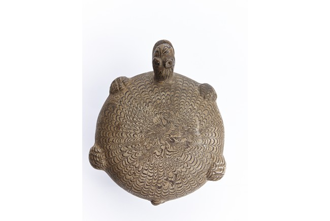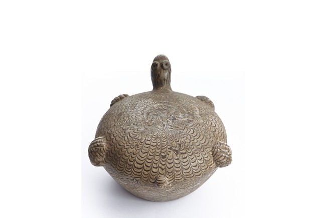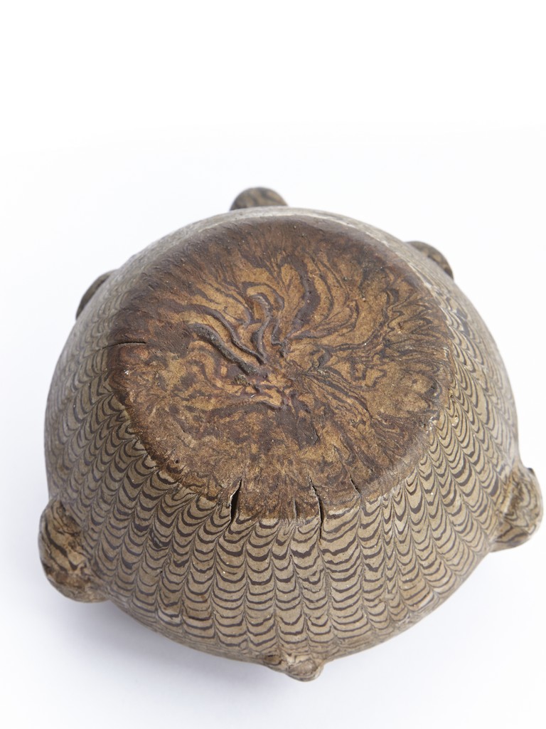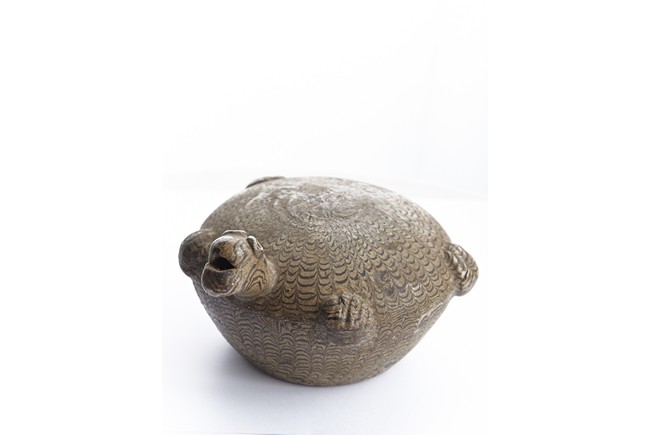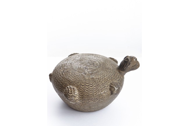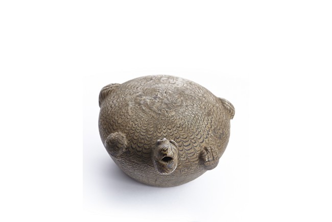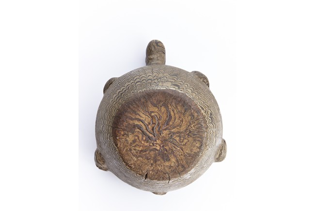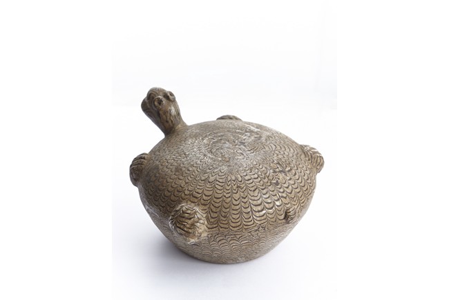 The porcelain water drip in the form of a turtle, the body and shell of water drip patterns, the four short legs extending out from the sides, with the head raised high and open mouth. song dynasty period.