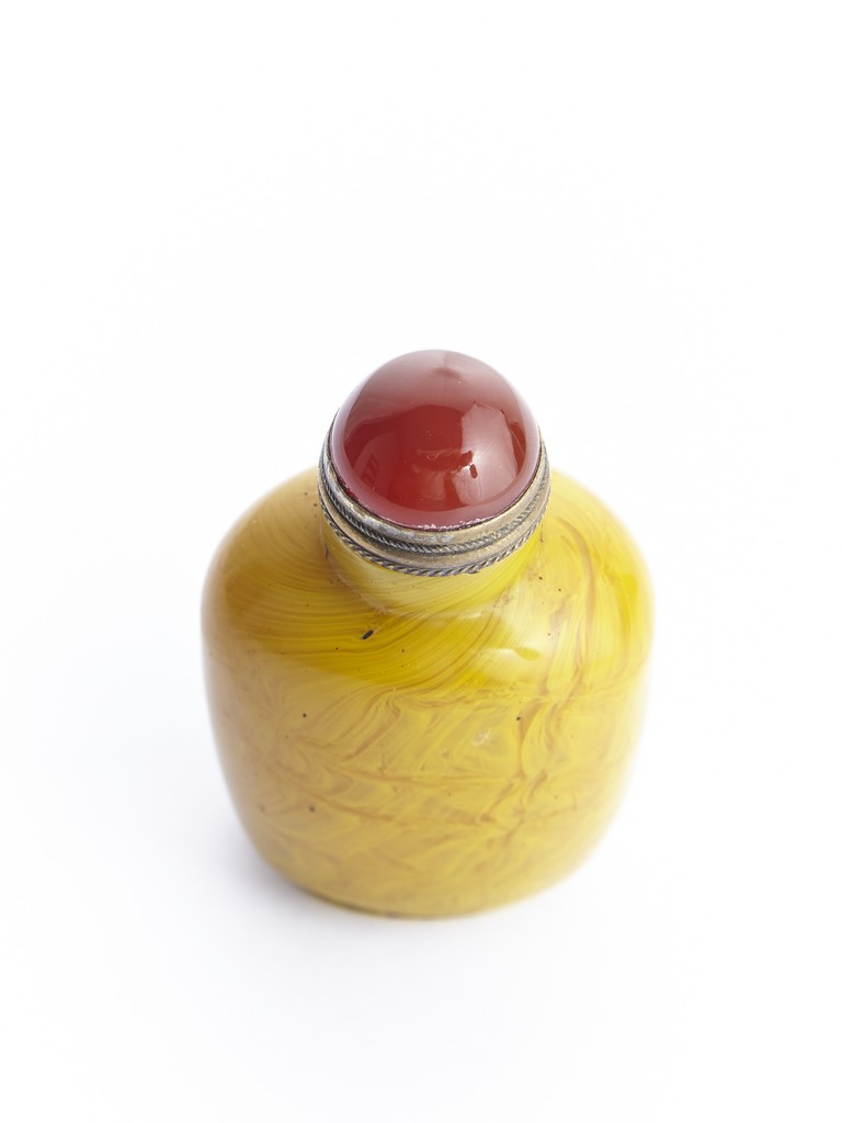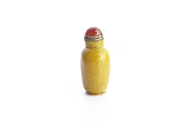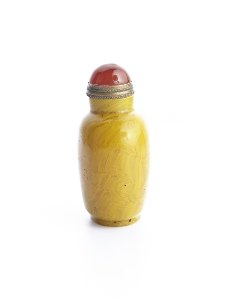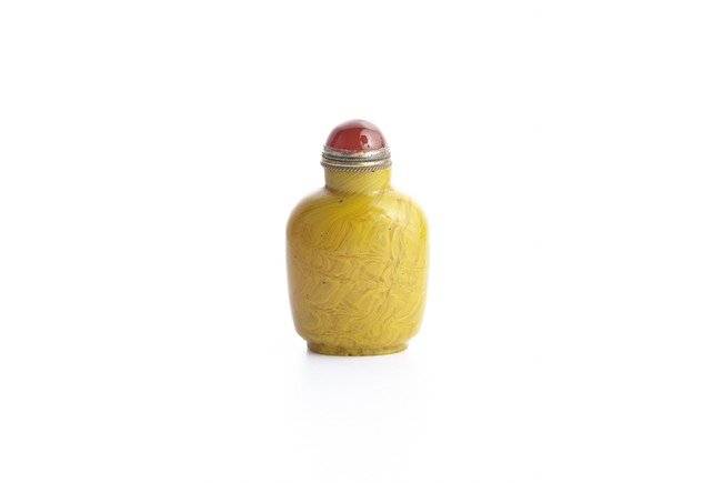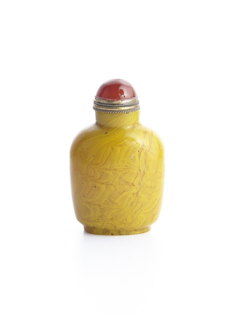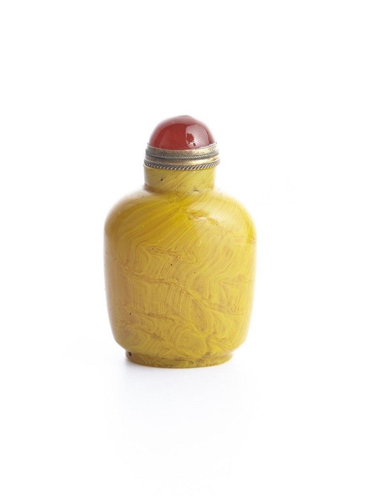 A SWIRLED YELLOW GLASS SNUFF BOTTLE    清 黃料絞胎鼻煙壺