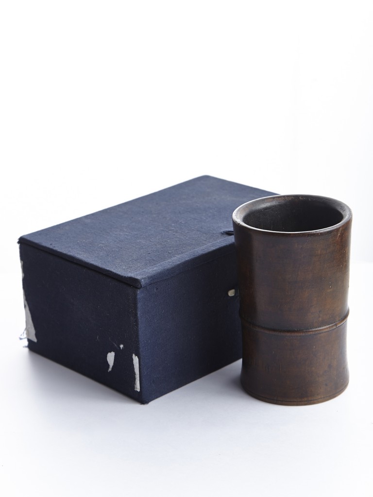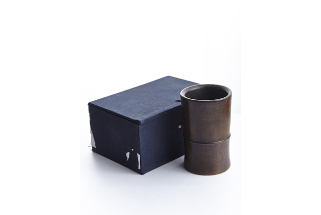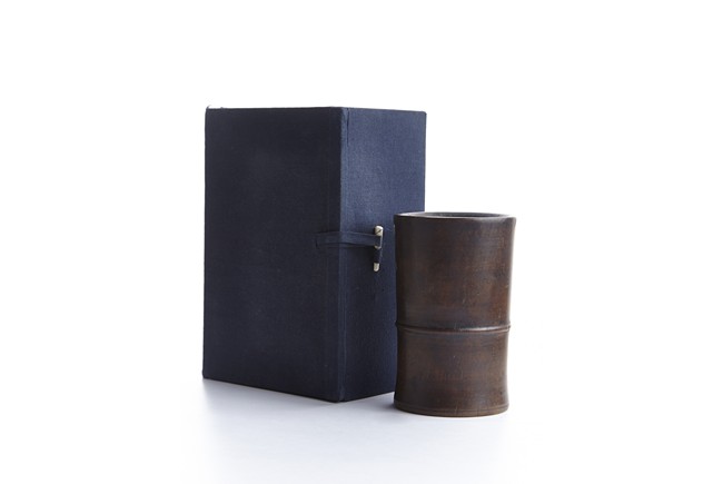 The brush pot was carved to depict a culm section of bamboo. Qing Dynasty period.