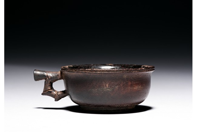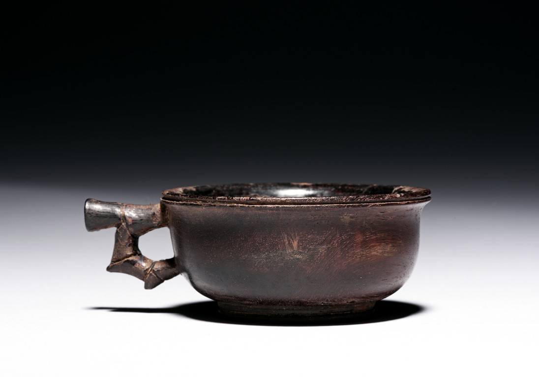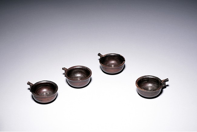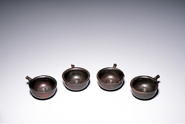 Each of rounded sides and everted rim, the side with arched handle. Late Qing or Republic period.