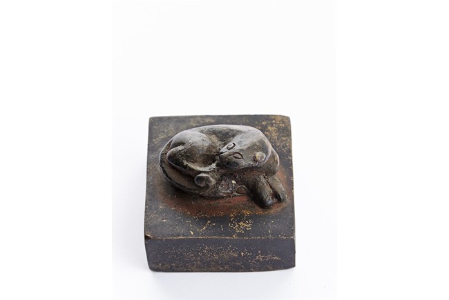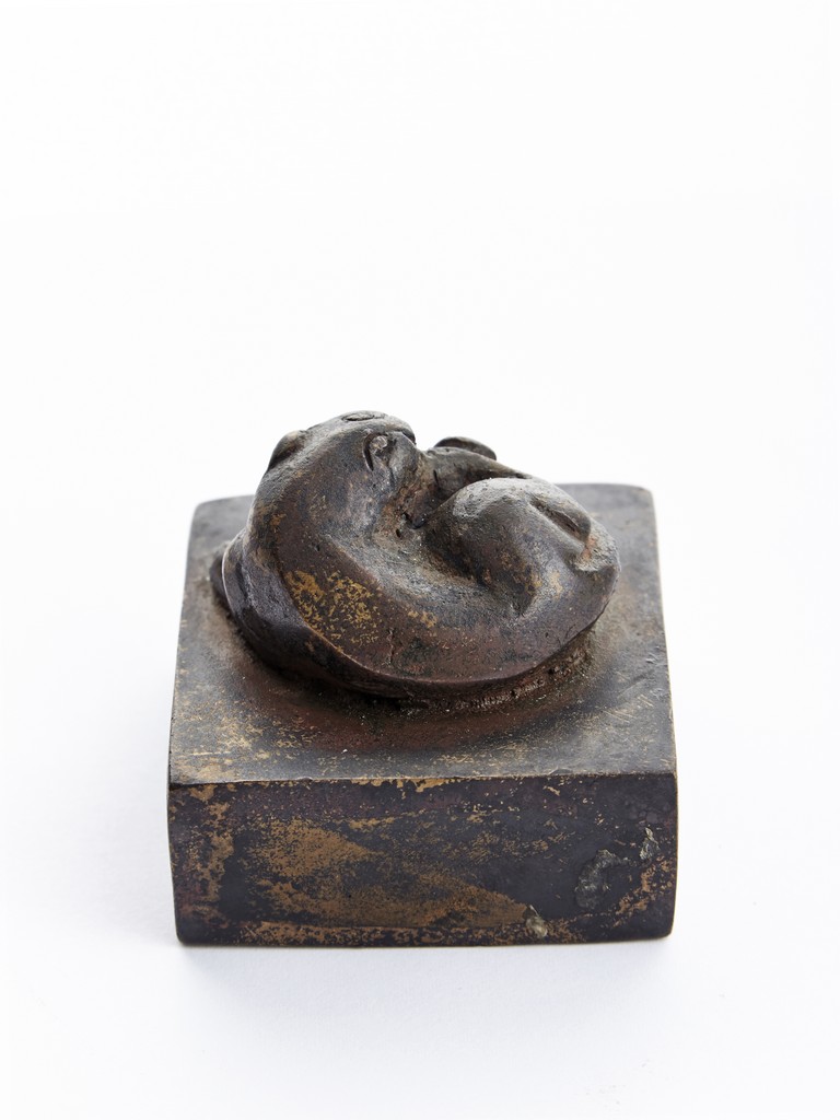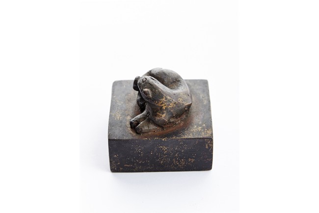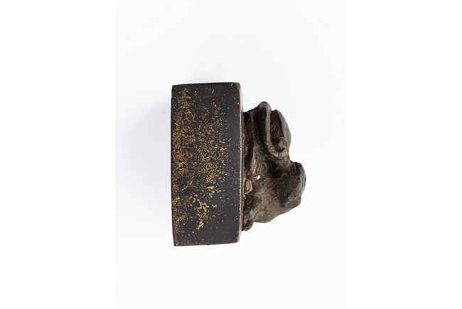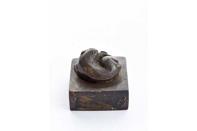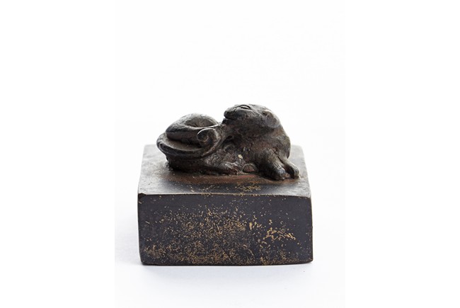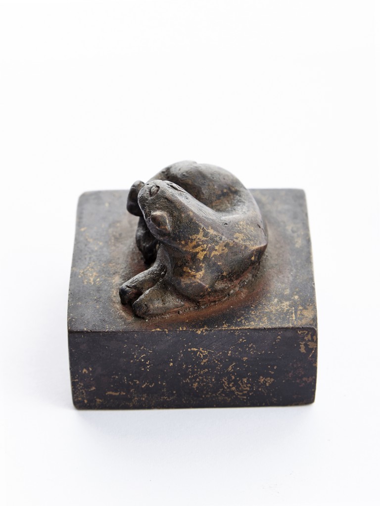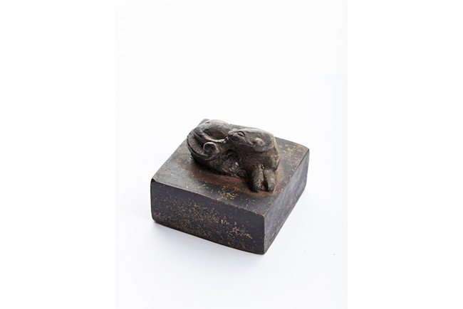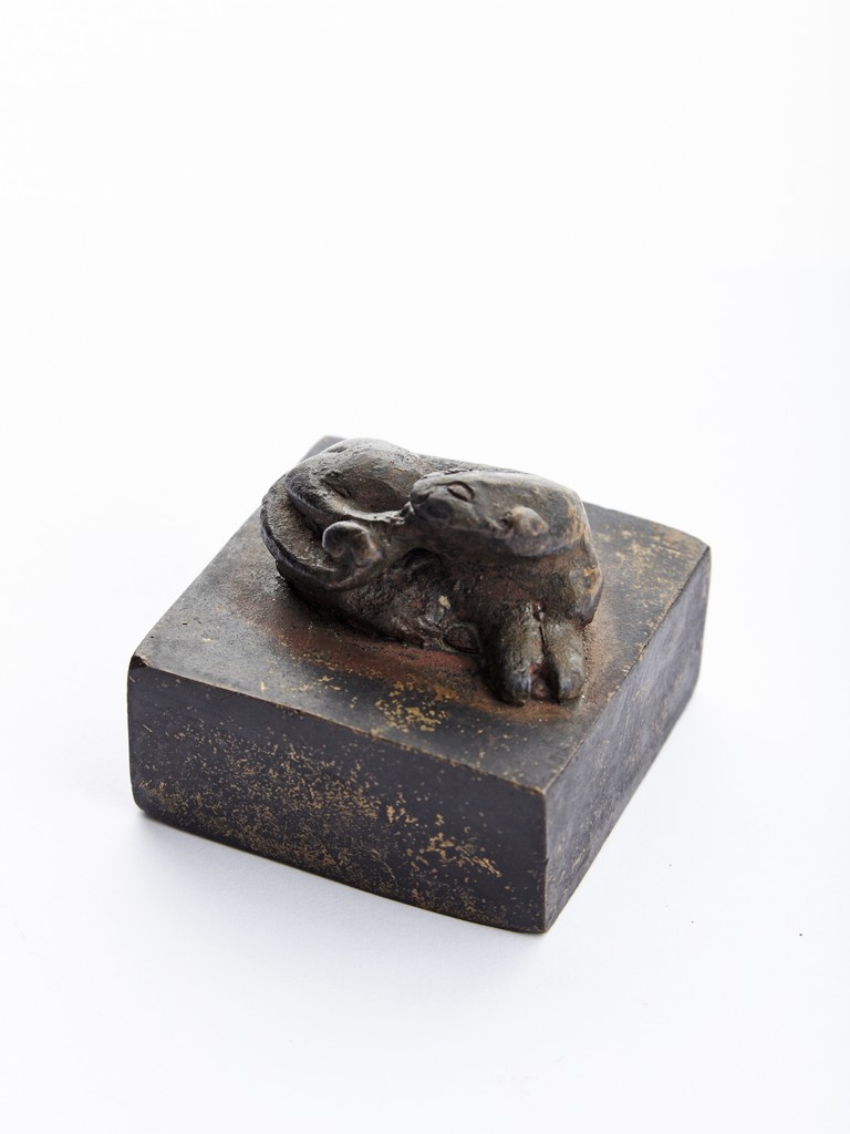 Of square section, the bronze seal surmounted with a recumbent mythical beast in high relief. Ming Dynasty period.