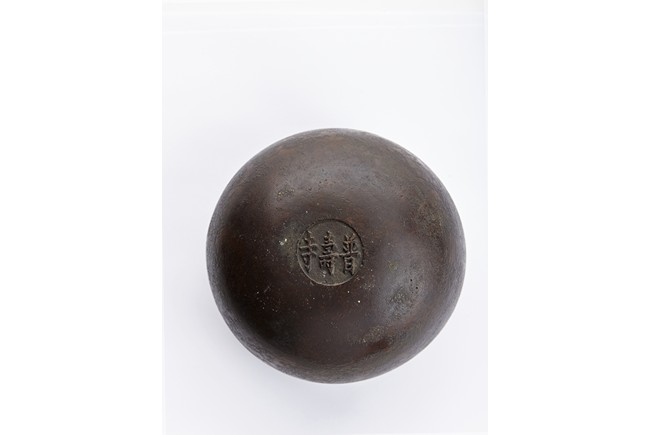 Modelled in the form of half-sphere, the bottom bears three character mark 'Yong Shou Shi' in a medallion. Ming Dynasty period.