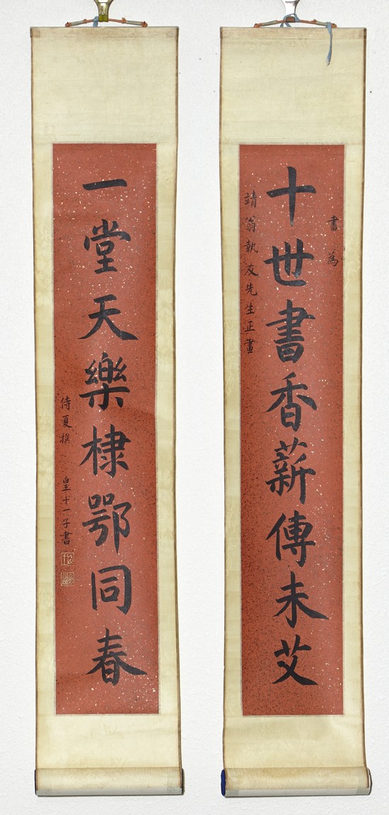 A PAIR OF INK ON PAPER COUPLET CALLIGRAPHY 成親王對聯一幅