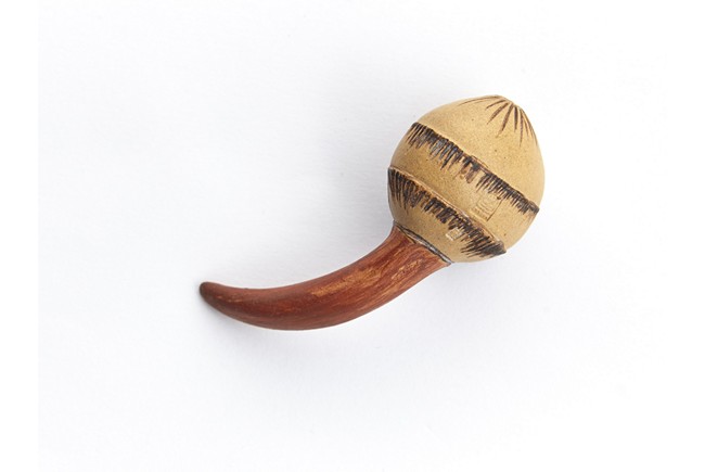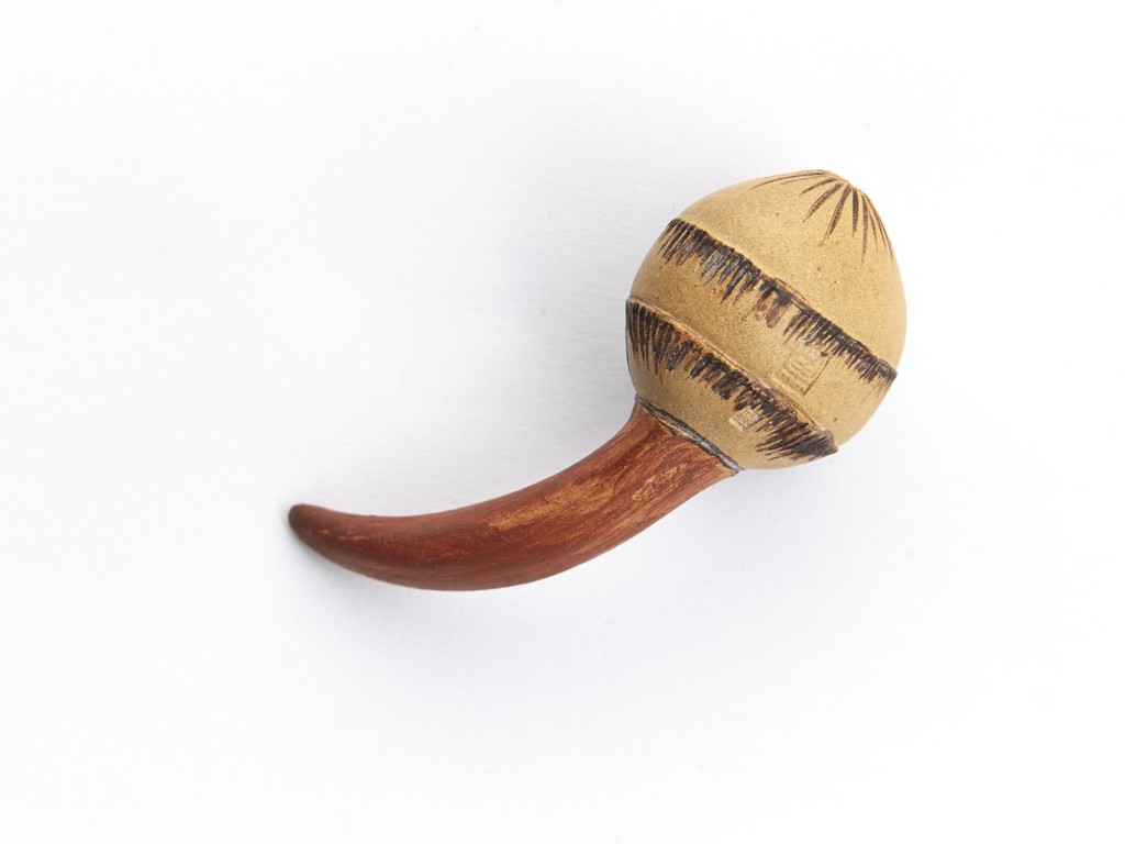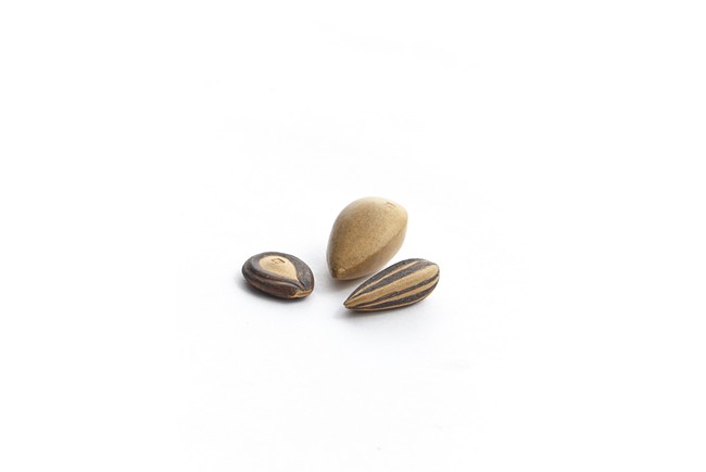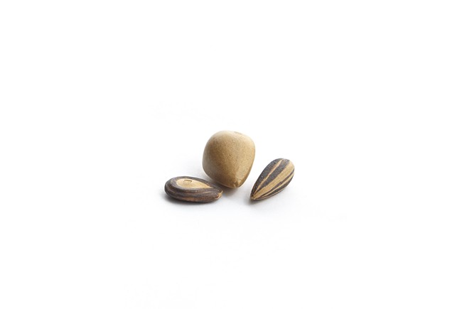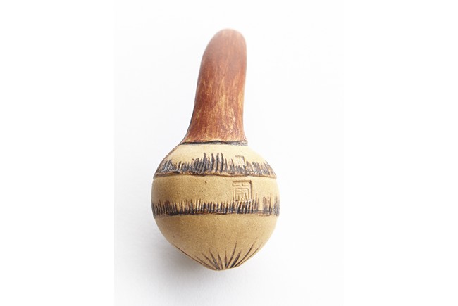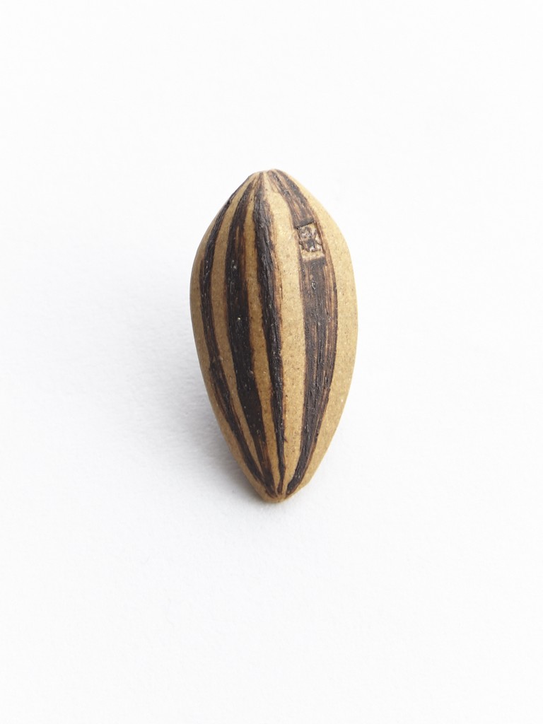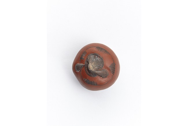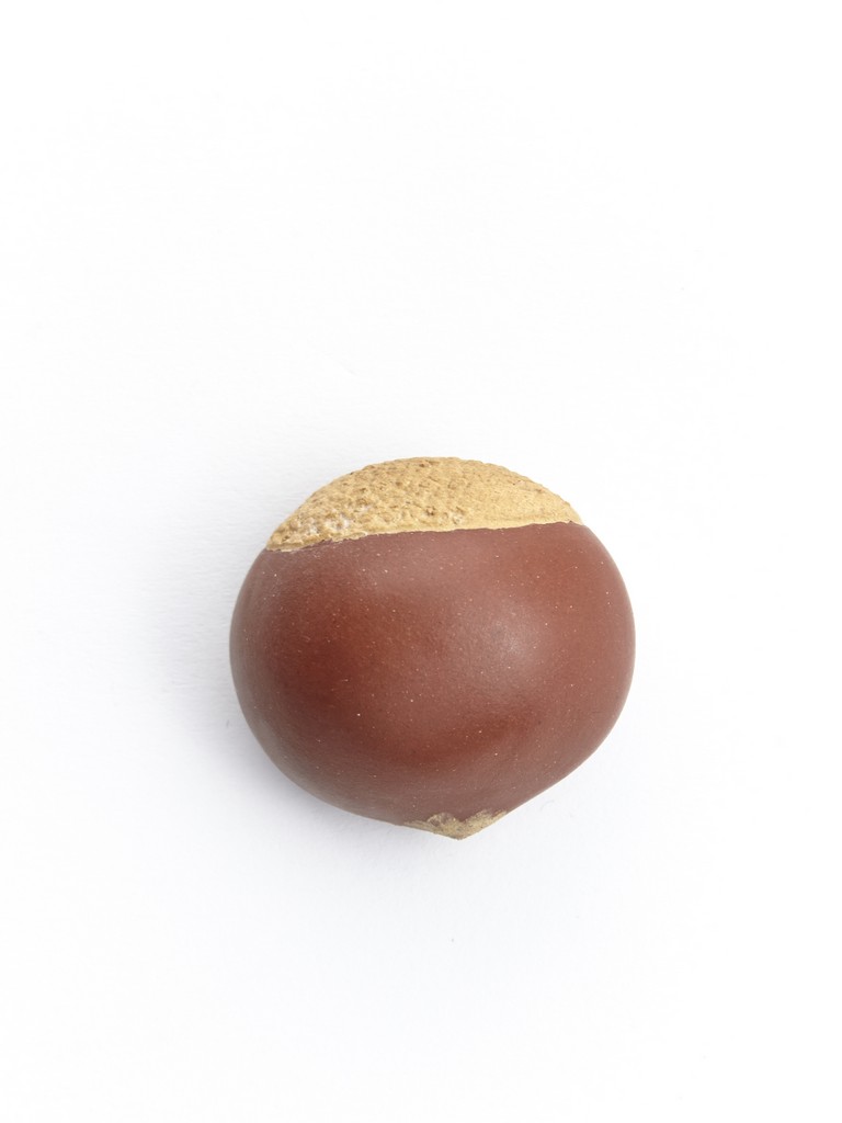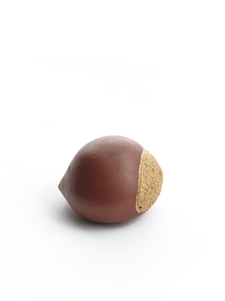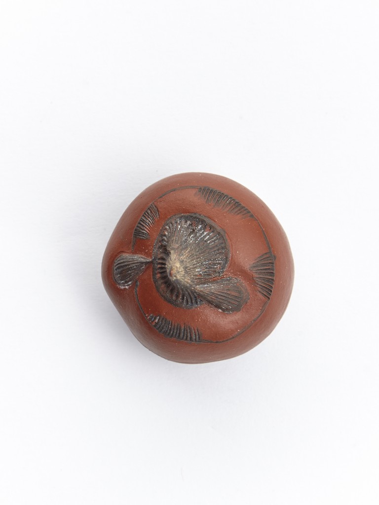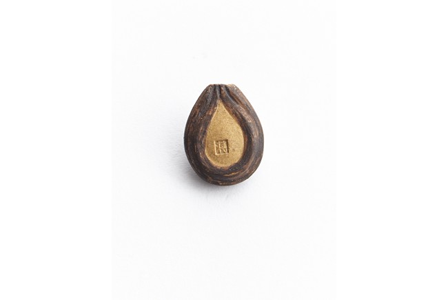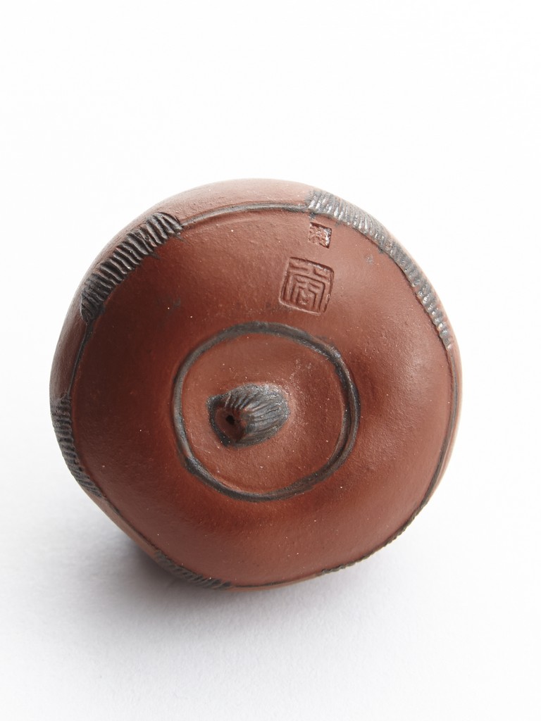 The present Yixing zishaware set comprises of water chestnut, water caltrop, chestnut, walnut, Chinese walnut, Sagittaria, ginkgo nut, watermelon seed, sunflower seed, and lotus, utilizing different tones of clays to imitate the actual objects.
