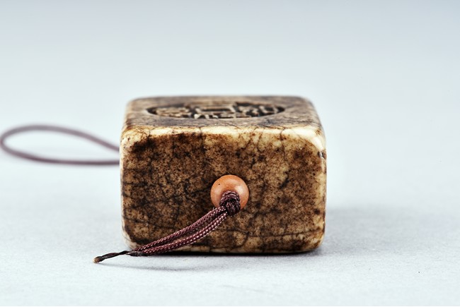Of rectangular shape, the pendant is carved with a bagua motif on one side and a four character 'Ji Xiang Ru Yi' on back side.