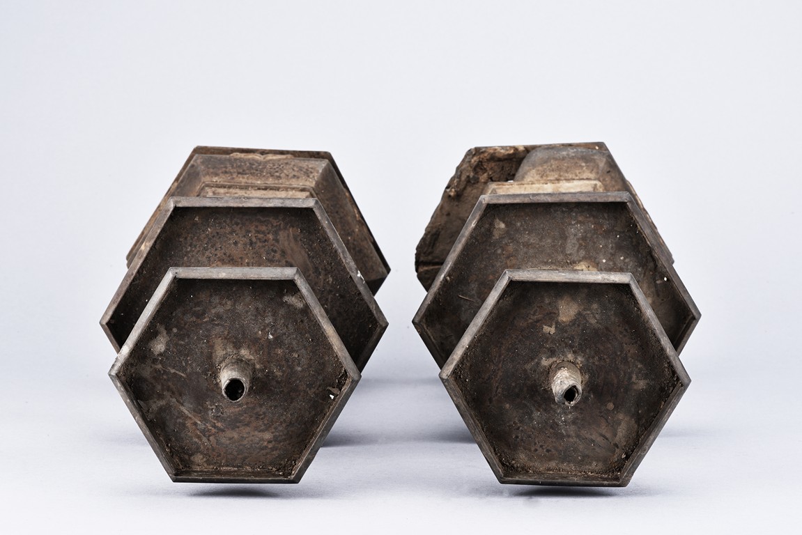 A PAIR OF BRONZE CANDLESTICKS 燭臺一對