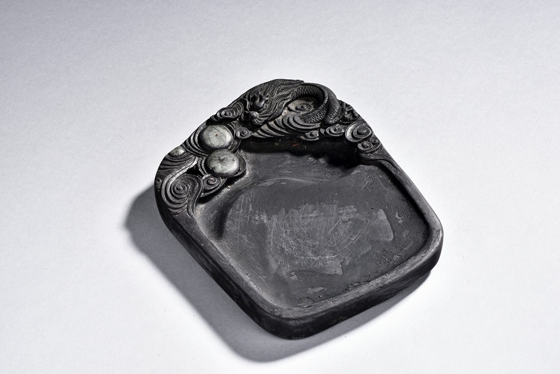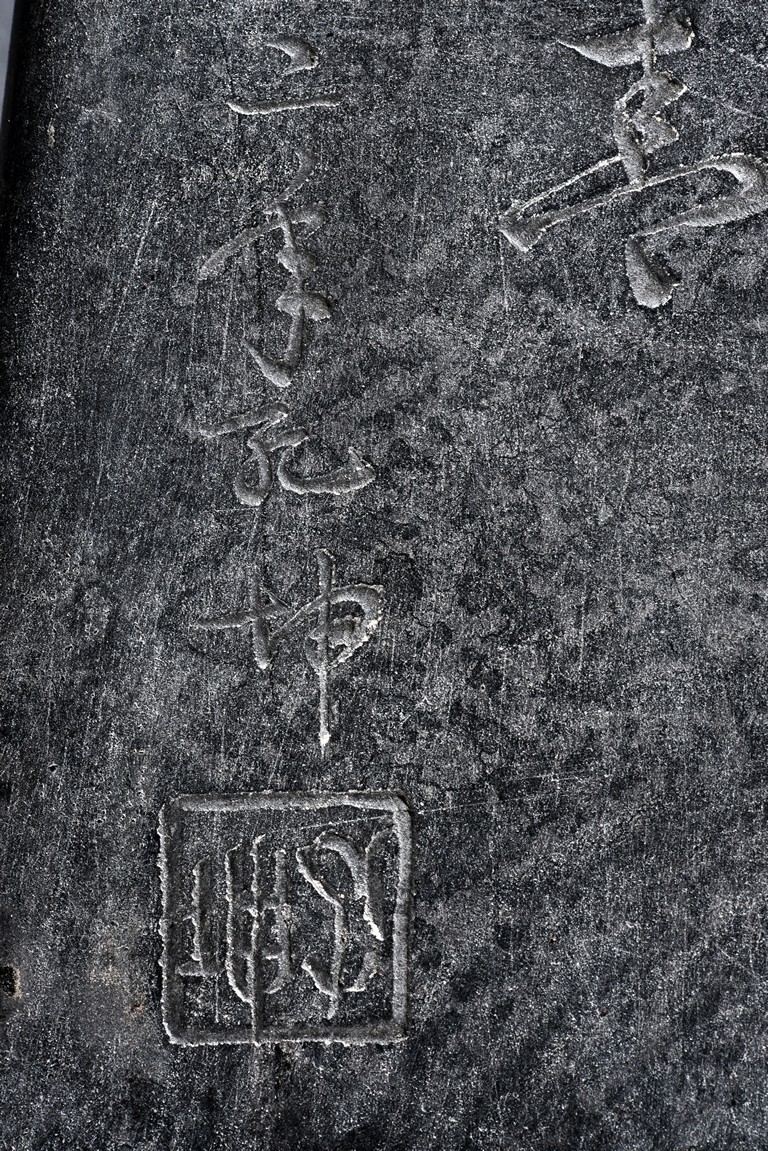 Comprising of six inkstones of various forms, four with inscriptions and cases.