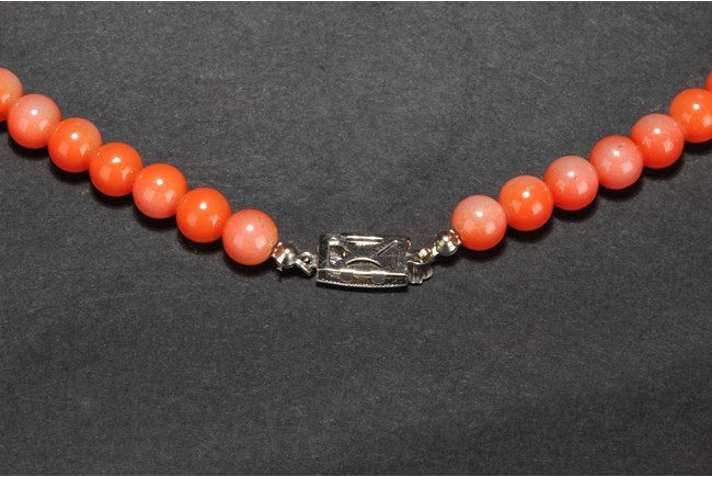 A STRAND OF RED BEADS NECKLACE 珊瑚項鏈一串