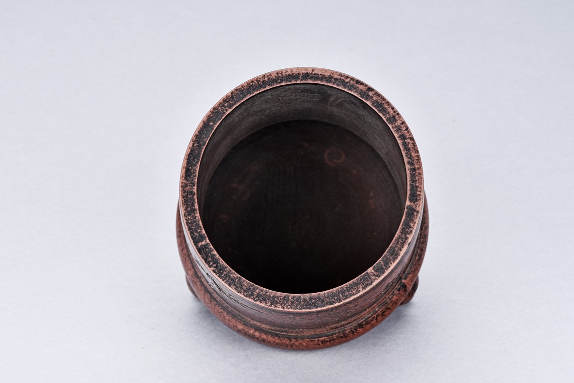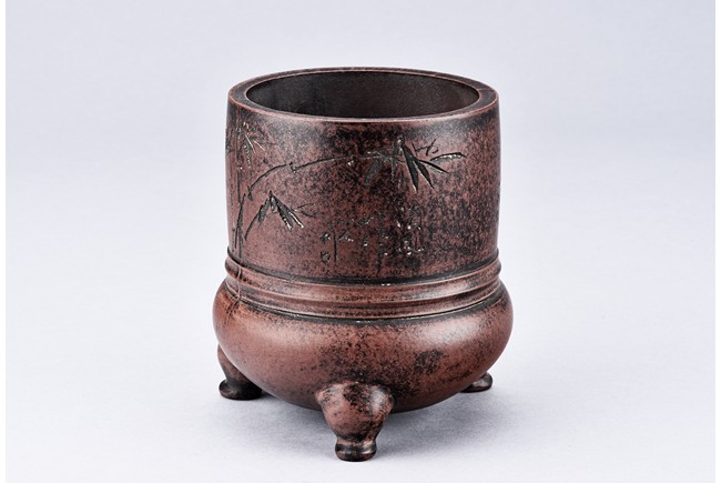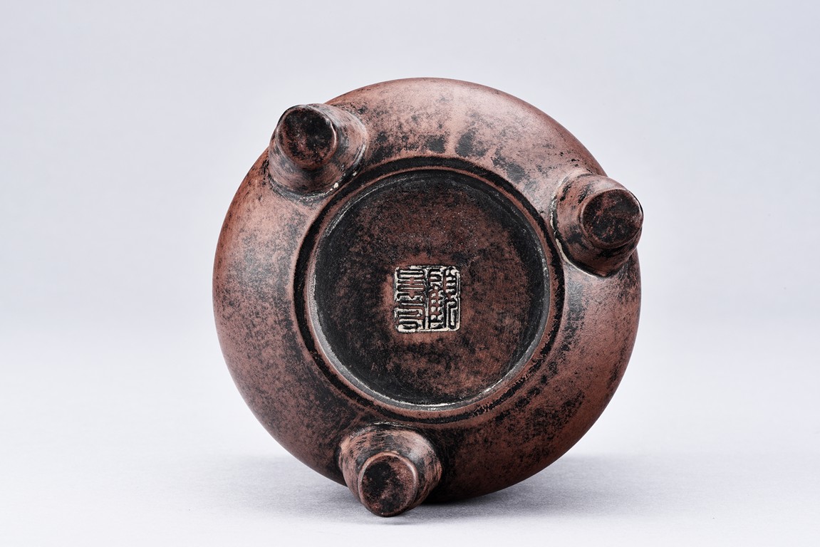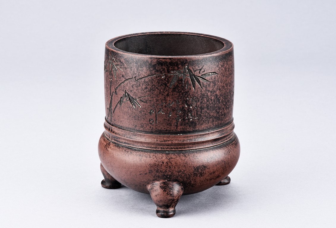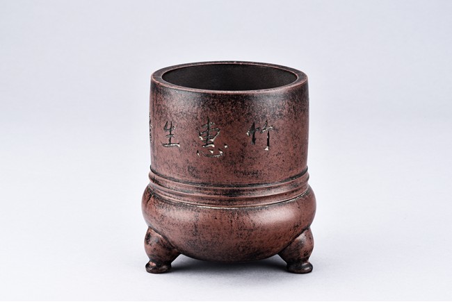 A YIXING TRIPOD BRUSHPOT 紫砂三足筆筒