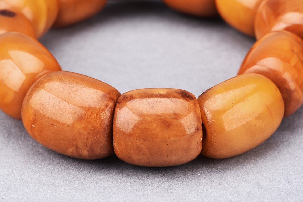 AN AMBER BRACELET OF TWELVE BEADS 蜜蠟手串十二顆