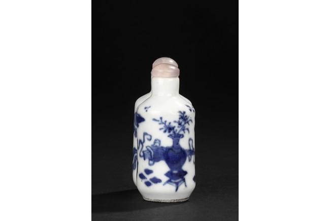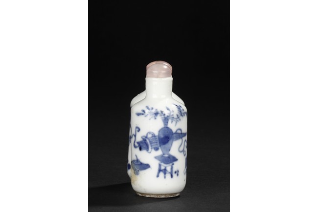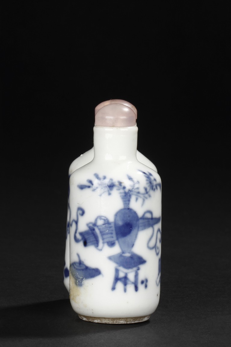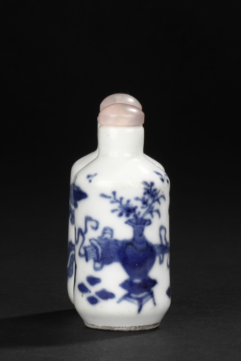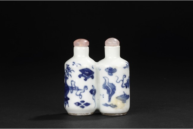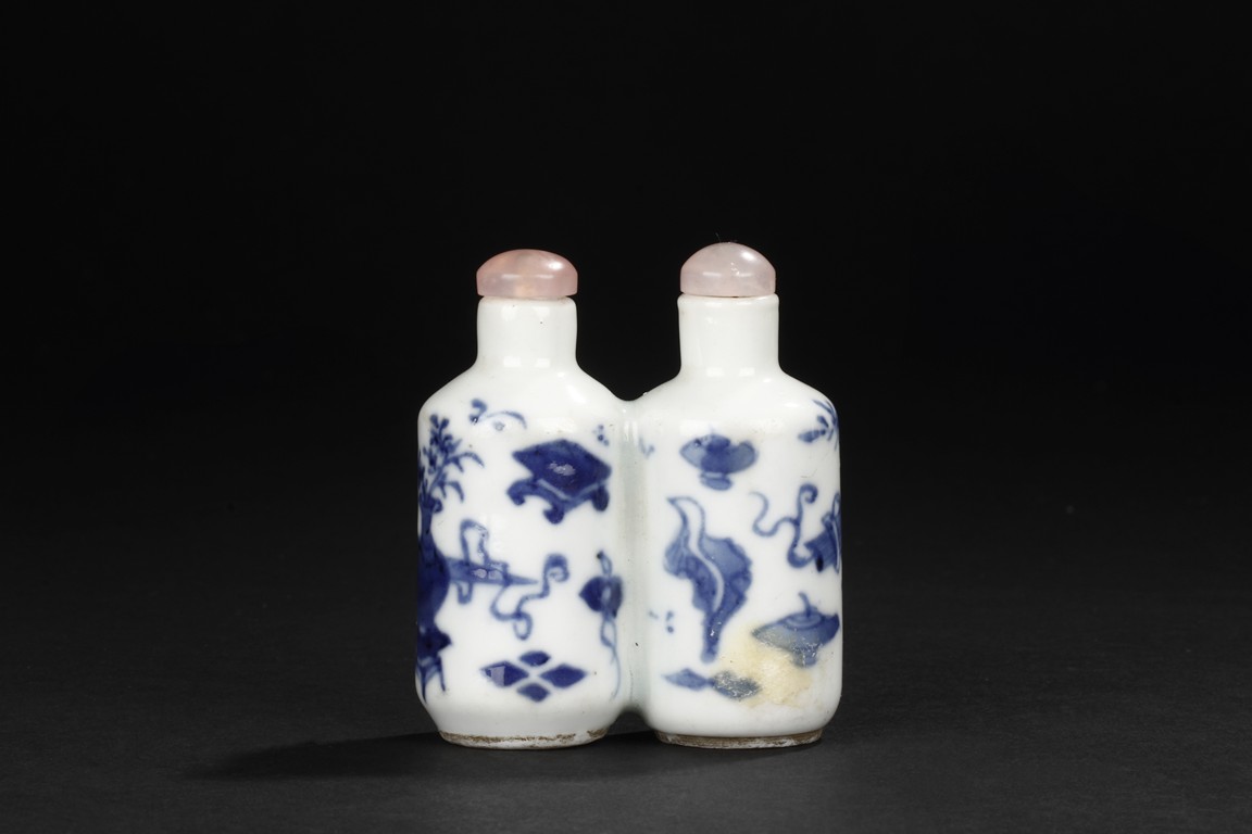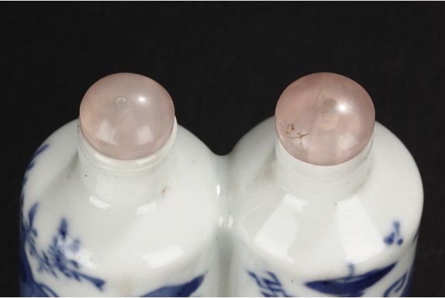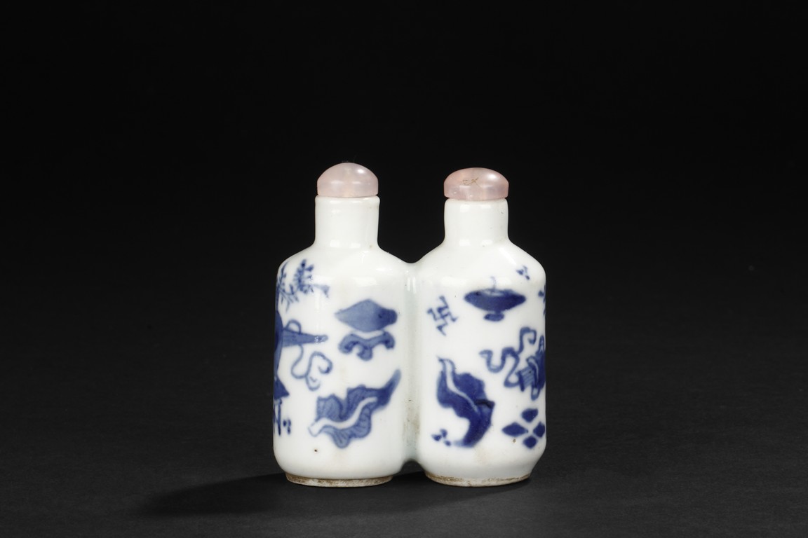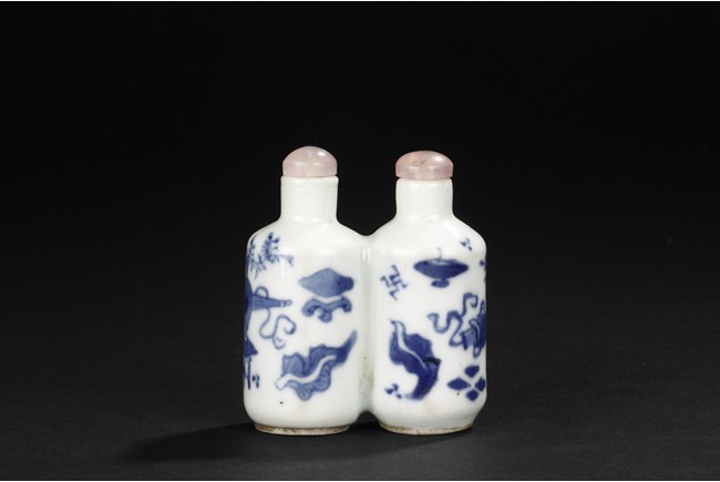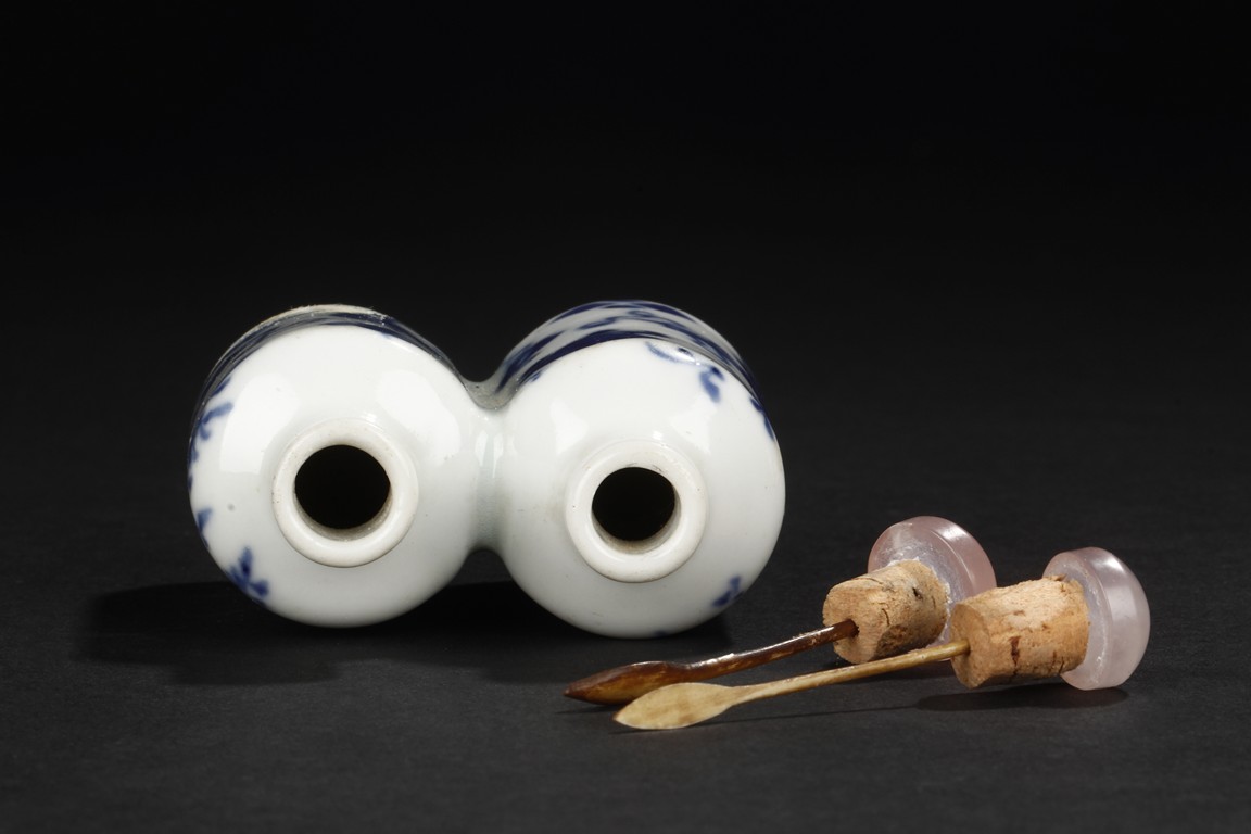 A BLUE AND WHITE LINKED SNUFF BOTTLE 青花鼻煙壺