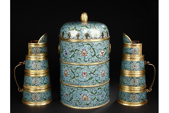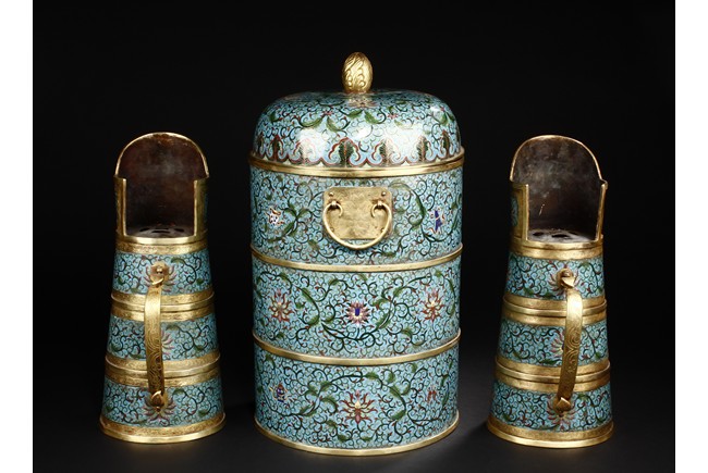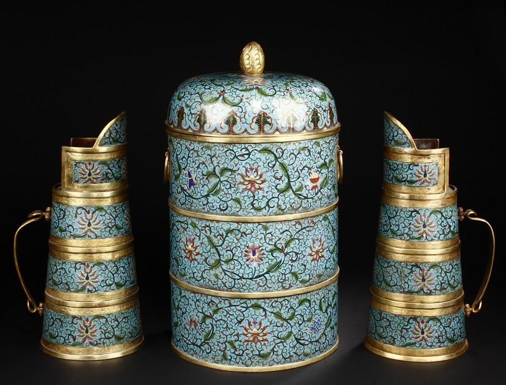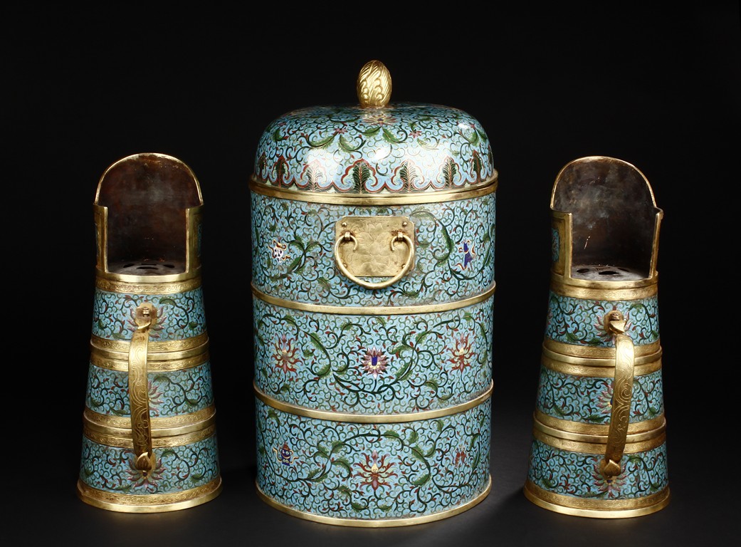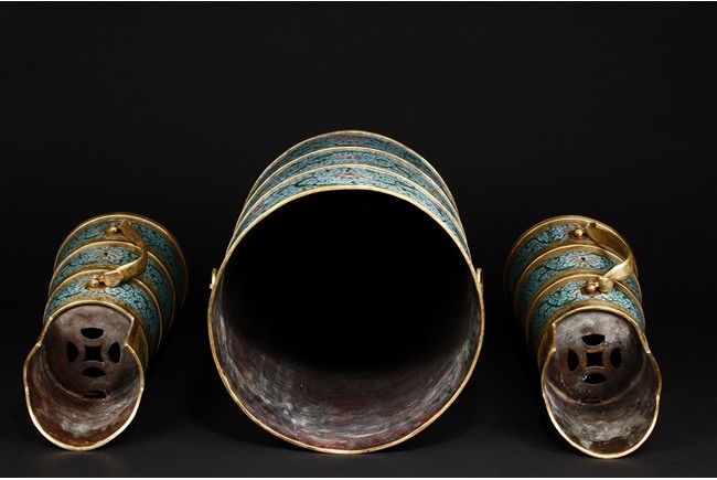 此組掐絲琺瑯做工精細,品相好,氣派大方,為早期宮廷所用