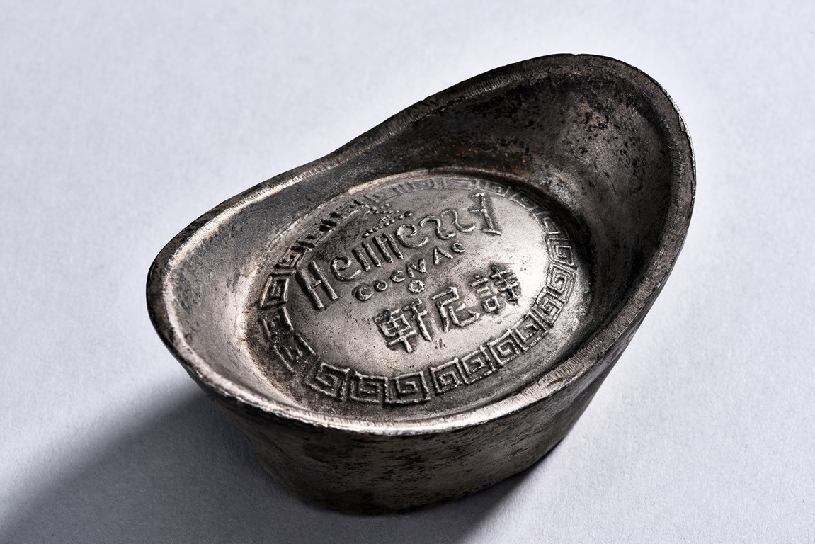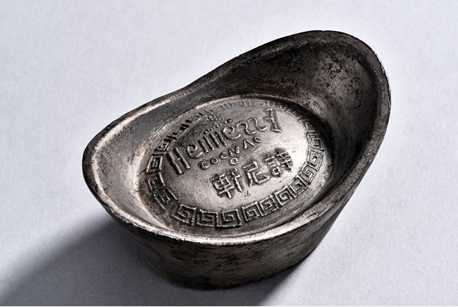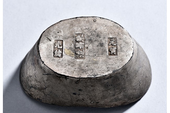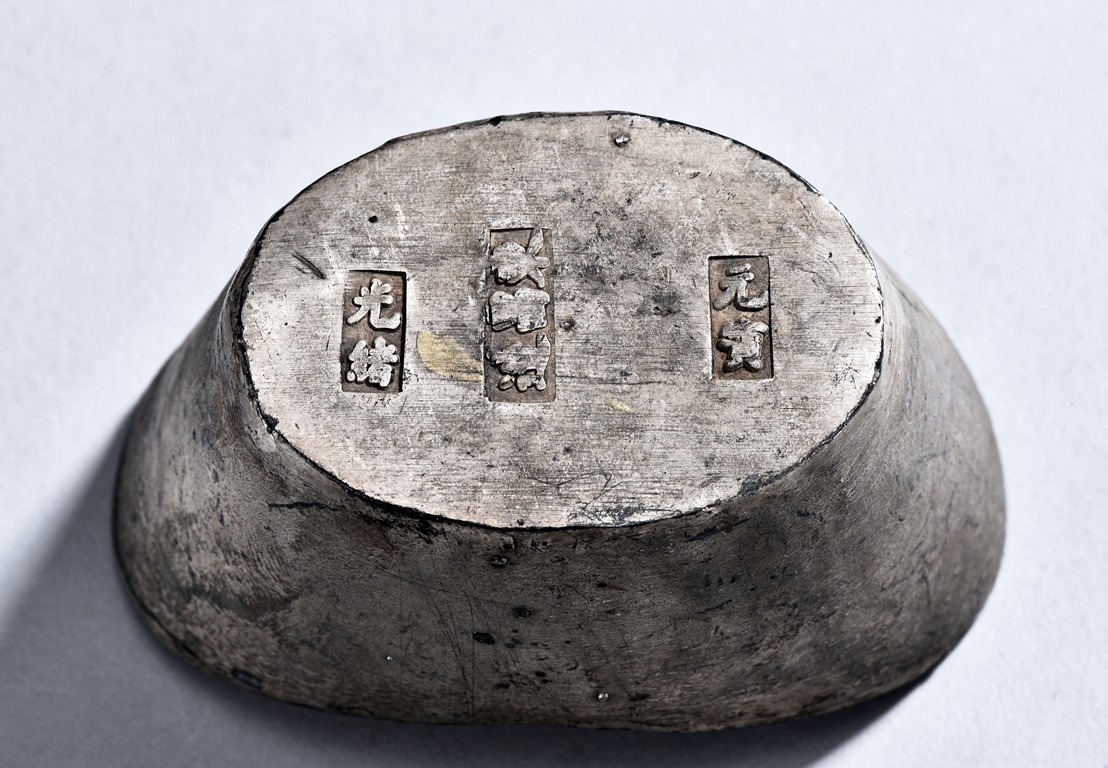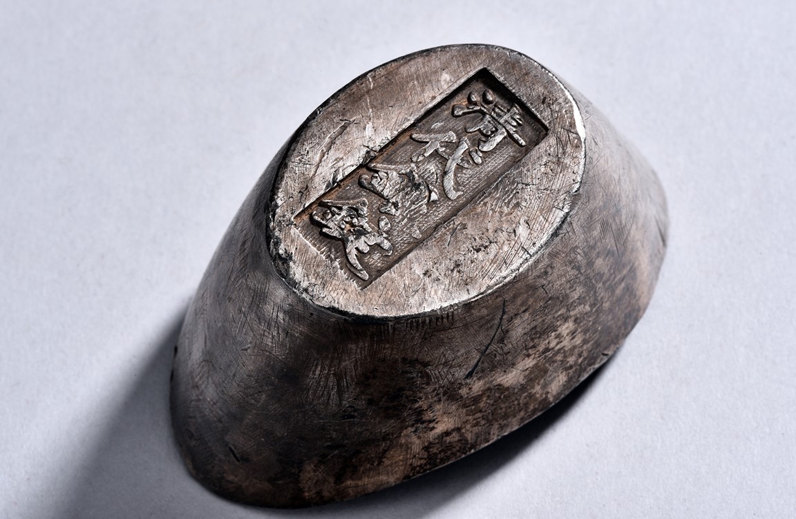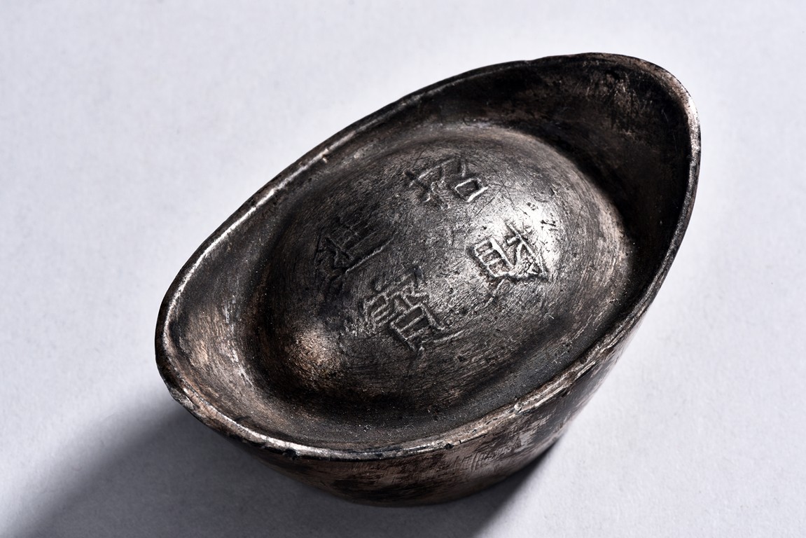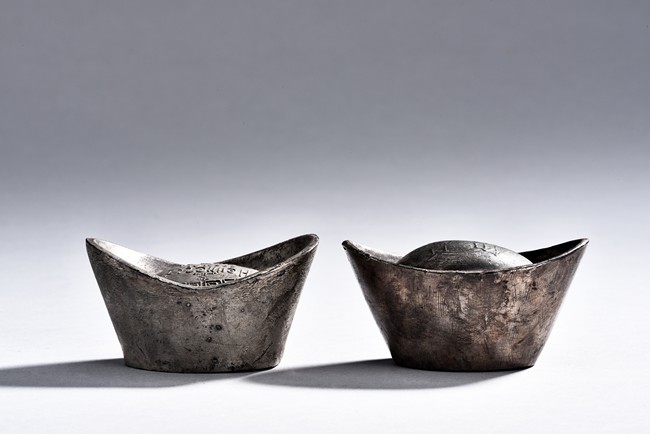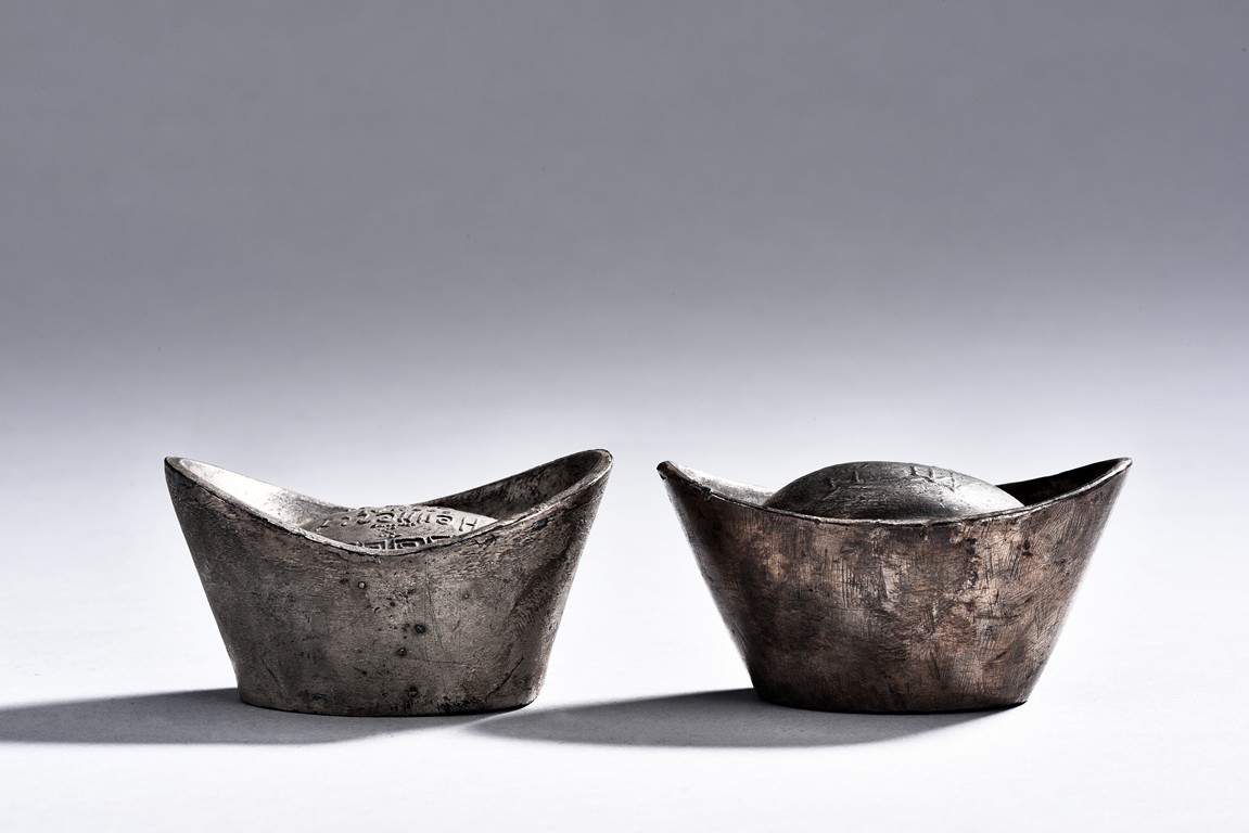 A PAIR OF TWO CHINESE SILVER SYCEE WITH MARKS 銀錠兩枚