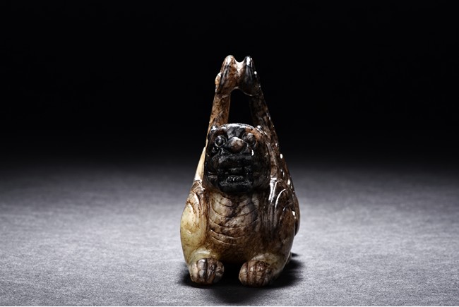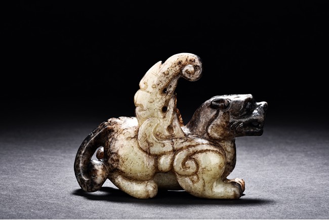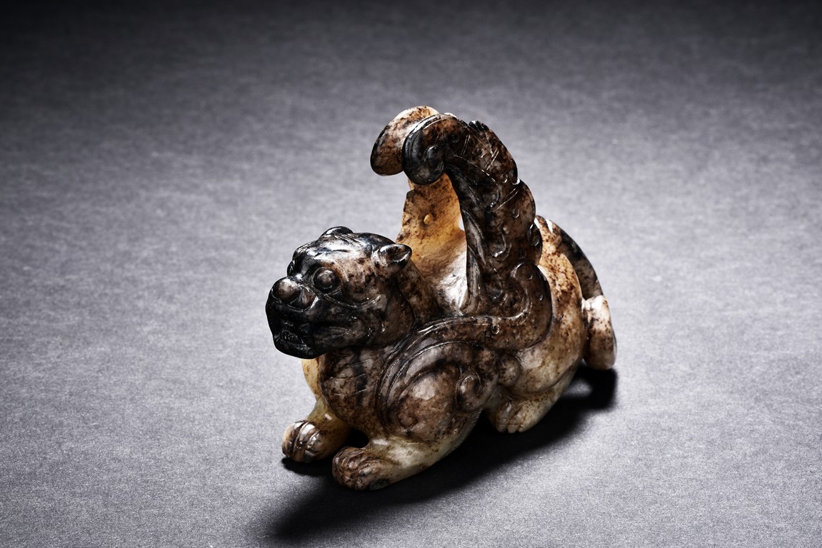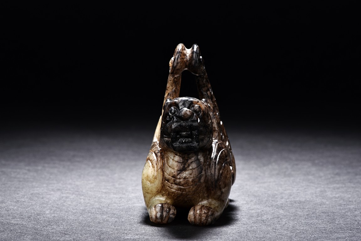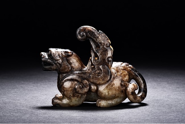 A ARCHAIC JADE CARVED FIGURE OF QILIN 舊玉雕麒麟