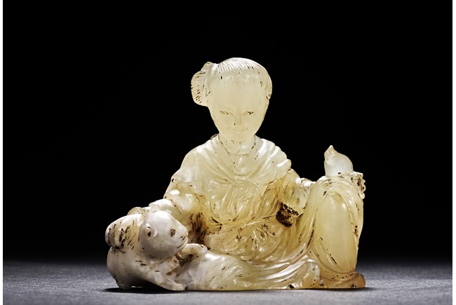 A JADE CARVED FIGURAL GROUP 清 玉雕人物與貓擺件