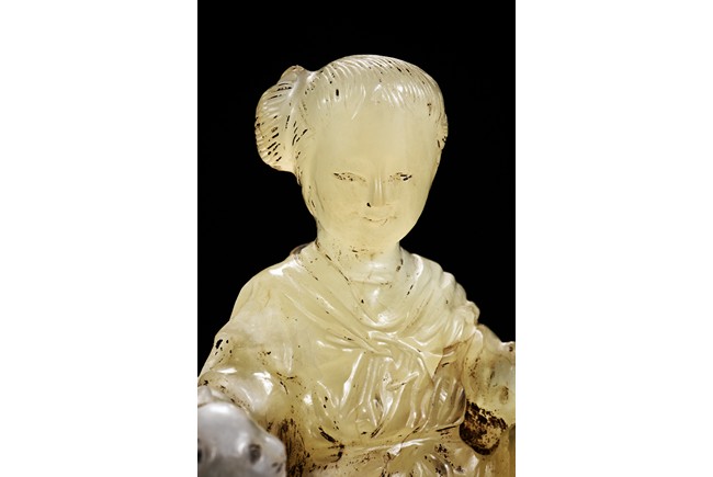 The group is carved with a beauty and cat out of translucent jade.